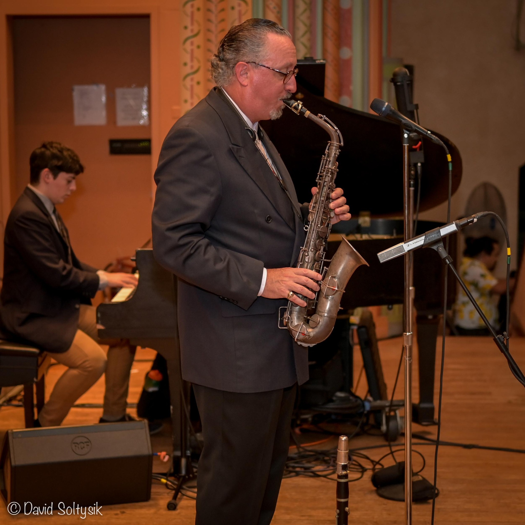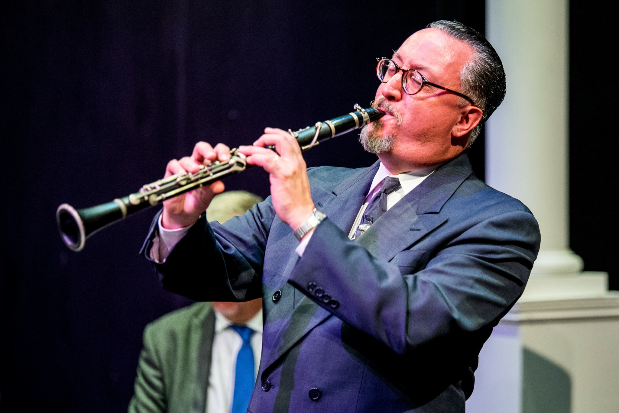 Leading the Boilermaker Jazz Band on clarinet, saxophone, and vocals is Paul Cosentino, a full-time bandleader/performer who founded the band in 1988 at Carnegie Mellon University in Pittsburgh. He is constantly searching for more tunes to add to the band’s classic jazz repertoire — you’ll hear something different every time! Paul plays an antique Albert system clarinet giving him a wonderfully distinctive sound.
