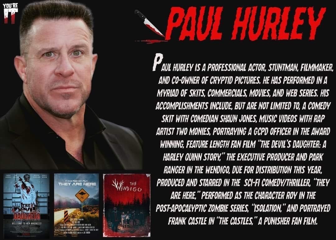 It all started with a friend request. I had recently gone through a divorce and was looking for a change of scenery. I was always told to surround yourself with the people who are living your dreams and one day you will too! I was looking for a change. I sat up one night on Facebook and simply started requesting suggested people whom were living the life I wanted to live. By chance just before Covid I received an invite to a movie release premier from a new friend. She was a film director and actress in the industry. I thought why not, I never would have imagined myself at one, but I immediately got excited. So the next day I went and bought a suit and prepared to go! I met some really amazing people that night whom I’m still close to today. After that night I began to receive numerous friends’ requests, sometimes double digits daily from people in the industry. They really network! Well, after covid restrictions were lifted I received a message from another Director and actress about playing a part in a proof-of-concept film as a bouncer. Well heck I’ve done that for nearly 30yrs. I got this! From there it dominoed from referral after referral, project after project, I’ve been in over 20 films in just the last two years and slated to film another 10 this year. In January 2023 I co-created Cryptid Pictures LLC and went into film production. Our First film The Wendigo was released in August 2023. Terror films covered our distribution, and it went worldwide. Again, I never thought something I had a part in would be required to be translated into 7 different languages. But here I am. And we’re hoping our second release of our Cryptid Collection anthology film in February is just as successful.