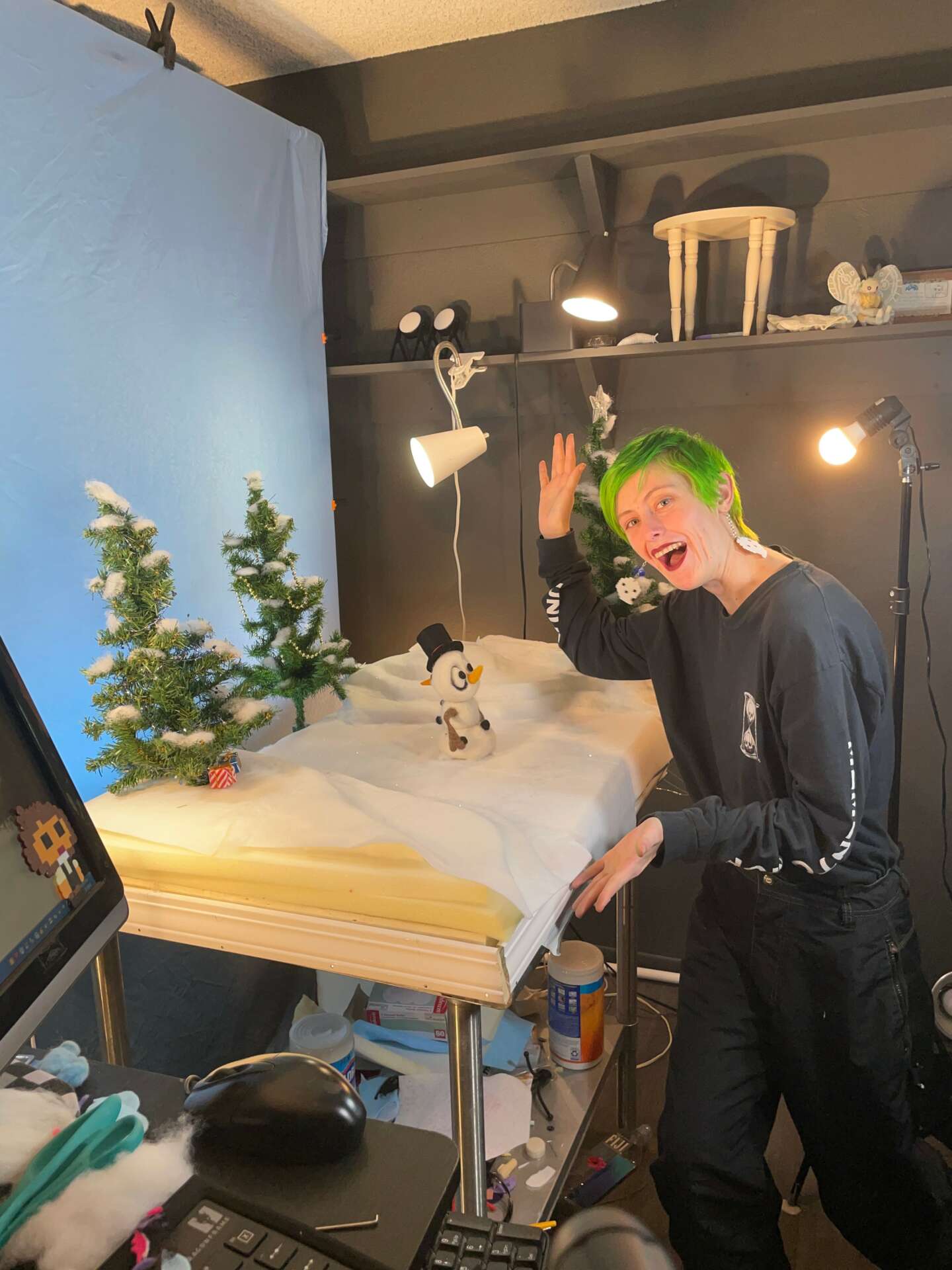 I’ve always been incredibly interested in storytelling but having always struggled with dyslexia, I found myself searching for ways beyond writing to tell stories. I got into all sorts of interests that way: writing music, making comics, film and animation are the big ones. I started doing stop-motion and 2D animation in high school and it just progressed from there. My parents were always very supportive and I’ve always been a very self-motivated and goal oriented person so I dove in as soon as I got the chance. I got my first internship at a small stop motion studio in LA called Open The Portal in 2020 during the Covid-19 Pandemic and real haven’t slowed down since then. Now I have my own animation studio called Little Green Bug and I’ve been making animated shorts, promos, and social media content for bigger companies, which is especially nice given that I get to have more direct communication with the people I’m working with/for that way.