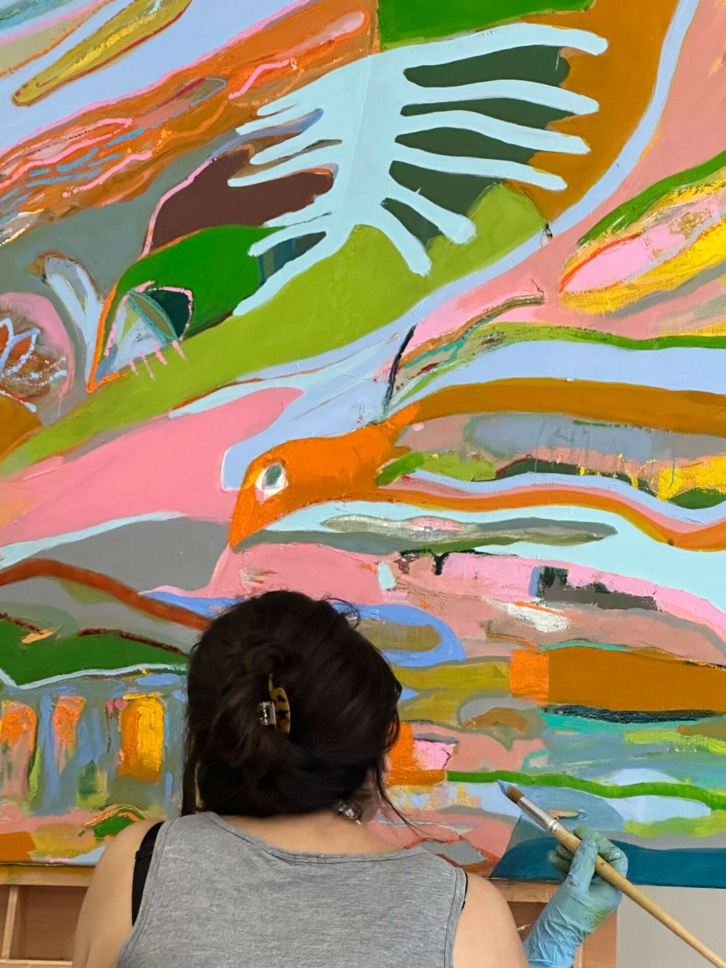 While I plan an overall composition, spontaneity and chance inform my art making process. I often incorporate the unpredictability and fluidity of my materials, like oil paints and wax. Intrigue, impulse, intuition, and metamorphosis are essential tenets of my work.