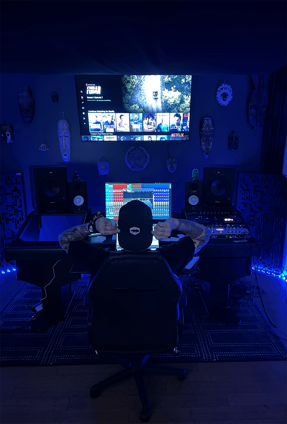 I studied everyday for hours on end. Giving up most of my social life and trading it for a life more desirable, lucrative and fulfilling. I tried to speed up my process by getting in the door of local studios in Denver Colorado where I started, but it is slim pickens (at the time) in Denver for studios. Especially one’s that will allow someone who has to previous working experience or school within that field. I also didn’t know anyone either, so I was out of options. I had to fend for myself if this was something I truly wanted to pursue. Spending hours on end in my room learning the skills of a producer and engineer was the only way I could even scratch the surface. Luckily, there is this platform called youtube and instagram that is filled with information if you know where to look and what to learn. Self discipline was the skill I had to teach myself. The most valuable skill I would learn and continue to practice on a daily basis. My only obstacle was me. If I wanted to do this for the rest of my life and make it a career, I had to put the time in, double time in comparison to my counter-parts who were actually working in studios and getting mentor advice. I had to spend the time, take the risks, put in the work and do it relentlessly days on end to get to to where I wanted to go.