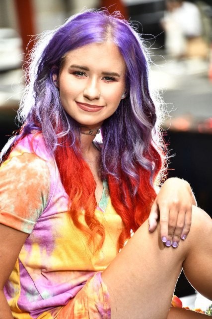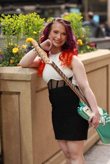 Punk rock pictures, tye dye dress, orange dress, flannel shirt pic, Billy Montana photography Black dress photo by Katrina Girtakovska Bright blue shirt and guitar pictures by Laura Sioux Cianciolo Black dress by Mila Hoffman Couture Purple Dress by Jaylani’s Boutique