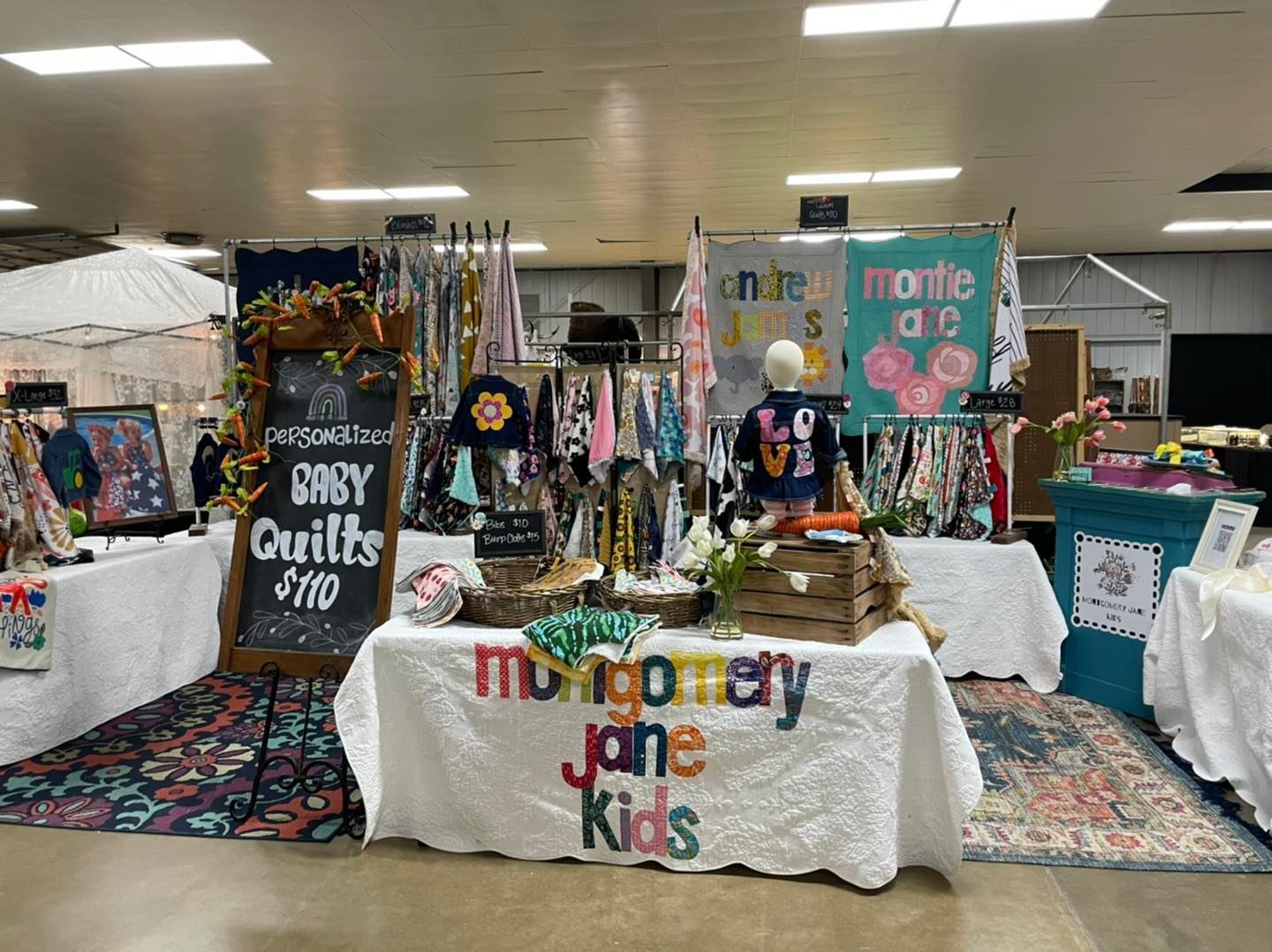 The name of my company is Montgomery Jane Kids. I chose this name because my middle daughter is named, Montgomery Jane, and she is the reason I started this business. When she was a baby, in order to fall asleep she had to rub the tag of her Old Navy coat. After a few years, it was time to start looking for a new tag, since there wasn’t much left of this one. I searched online for a tag blanket that was both functional and stylish and had no luck. Thats when I decided to start making small lovey blankets with tags on one side, and Montgomery Jane Kids has grown from that point on.