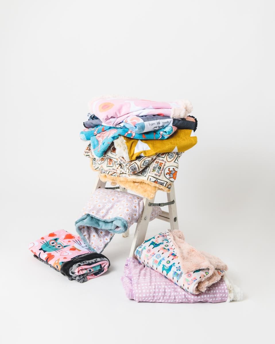 After making loveys for about a year, I decided to begin making more baby products. I now make custom baby quilts and jean jackets, baby blankets, and most recently just started making hometown mascot blankets.