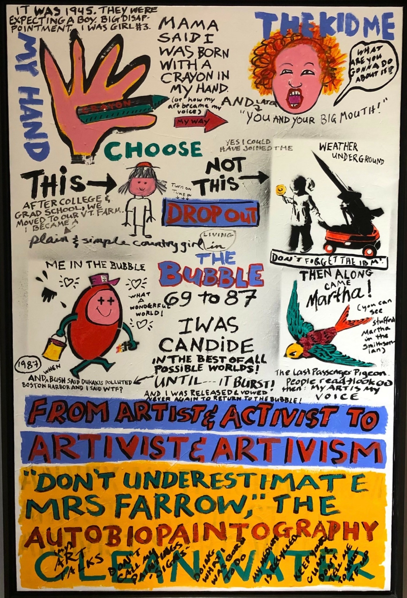 I realize how badly I failed with my first Artivism project, Clean Water. But I’ve continued working as an Artivist, searching for the next important subject to focus on. My art continues to be my voice. Loud, bright and colorful.
