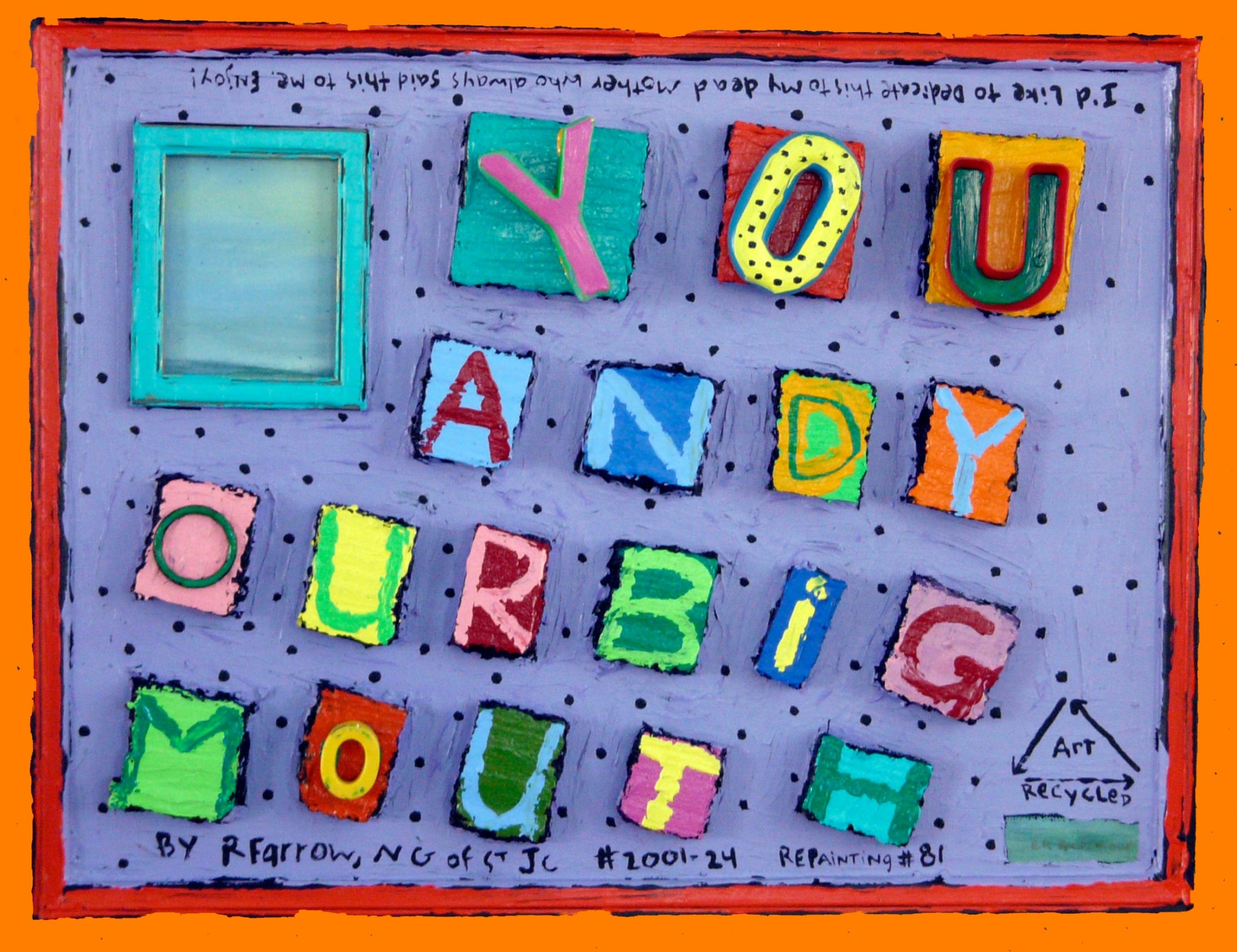 To continue to be an Artivist using the voice that was revealed to me in a dream years ago. Using bold words and bright colors. To remain connected to my community which is currently divided. To Create my truth using art.