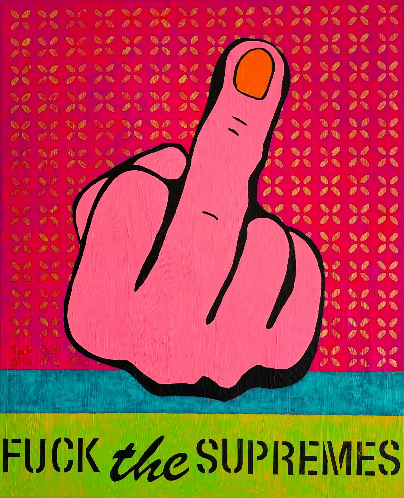 When the Supreme Court voted to end Roe v Wade, I made a painting of a hand with a raised middle finger that I called “Fuck the Supremes” and hung it on Main Street where it captured a lot of attention. It was so popular I kept on painting the image, differently each time for nearly 3 years. It became the only best-seller I’d ever created.