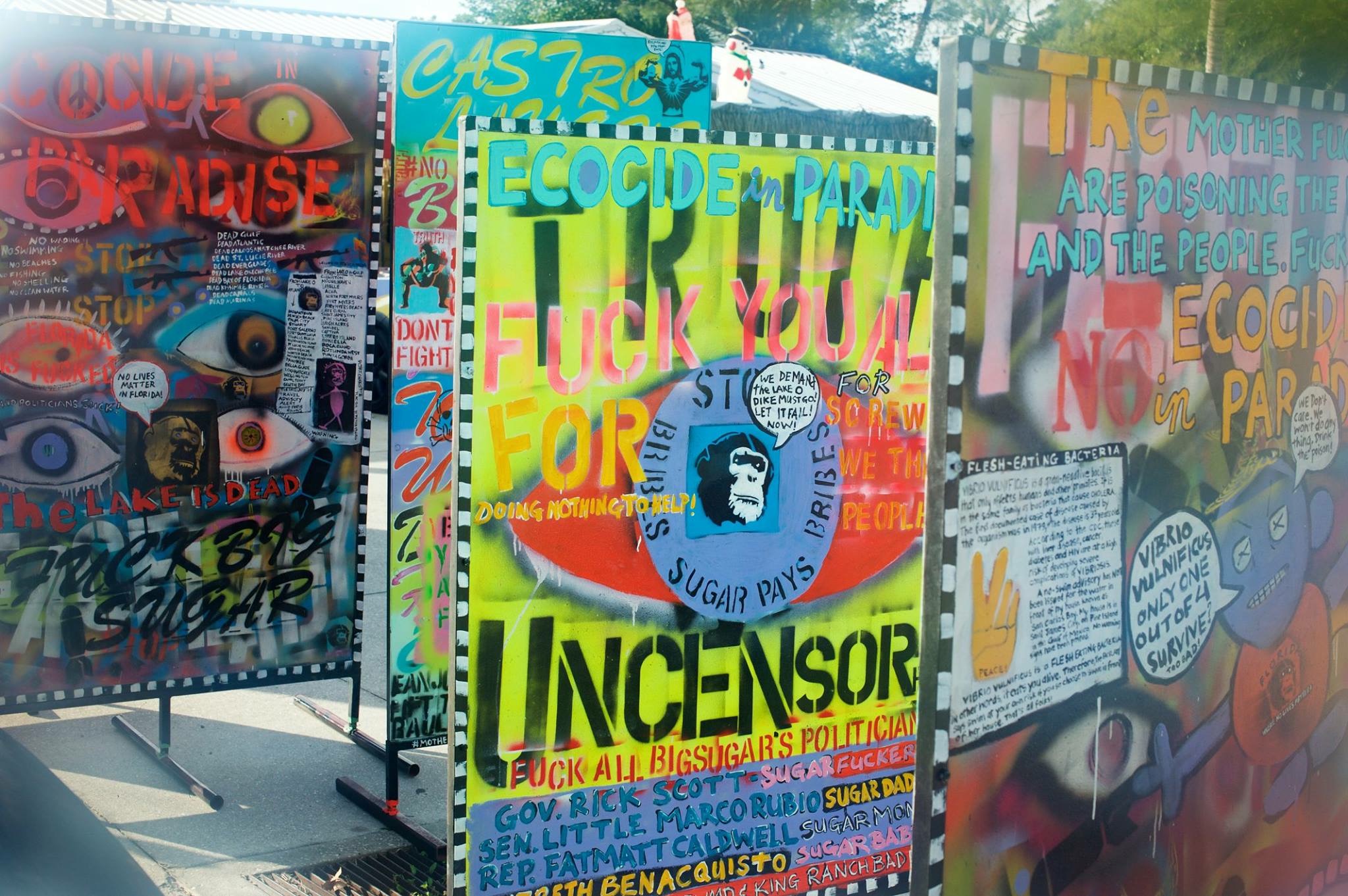 On that day I walked out to San Carlos Bay on the Gulf of Mexico, the water behind my house, hoping to photograph a spectacular sunset. A bright glint of orange light caught my eye when i got to the water. Upon further inspection I saw that the water itself was glowing orange. I’d lived right there for 12 years and went out to photograph the sunsets over the water almost daily and this was the first time I saw orange water. So, I contacted local water quality groups, their leaders and other clean water activists, met them, attended meetings and began reading lots of books on the topic. I began working closely with the South West Florida Clean Water Movement (SWFLCWM) and was soon creating all of their posters and flyers for whatever we were involved with. The movement soon became bold and colorful!