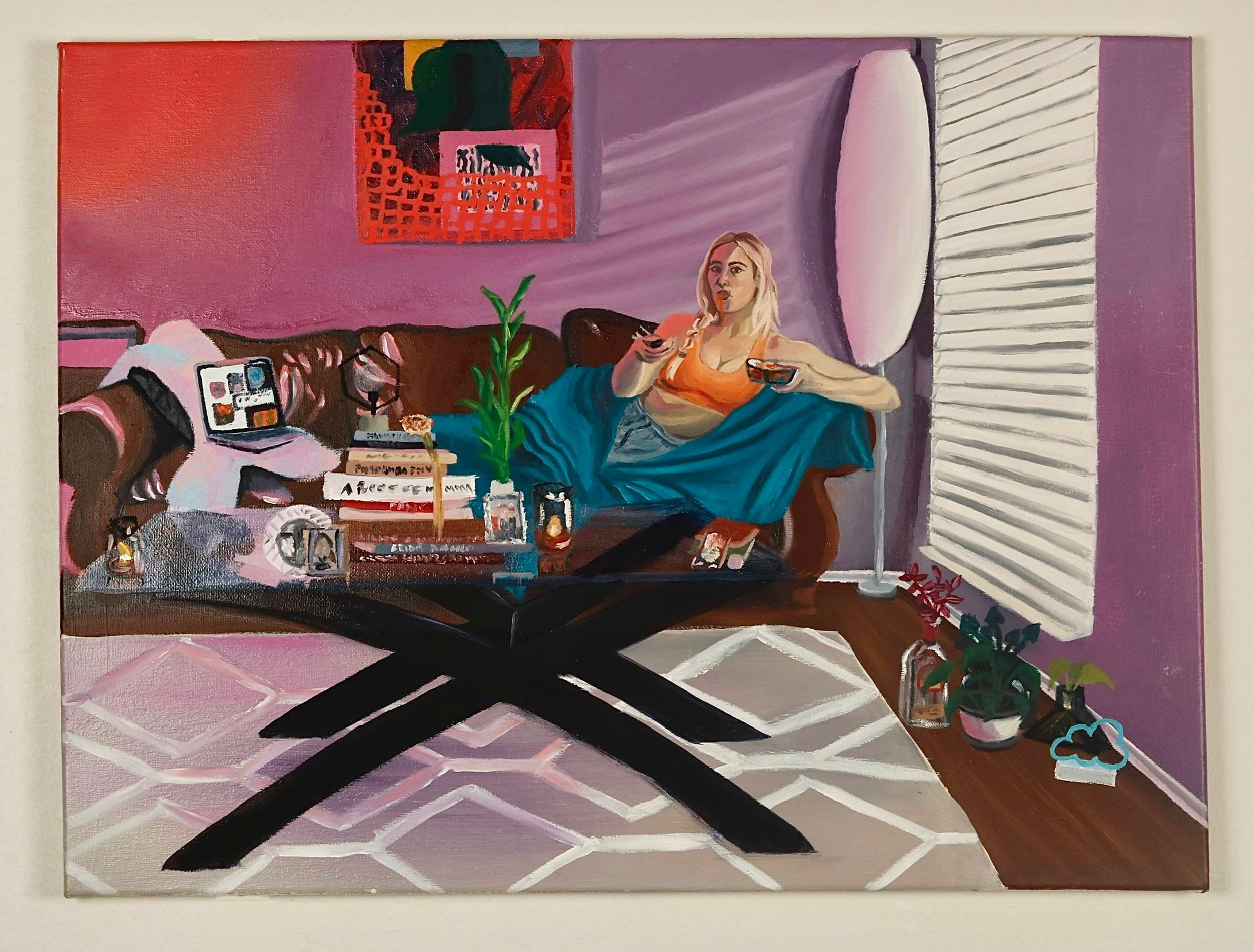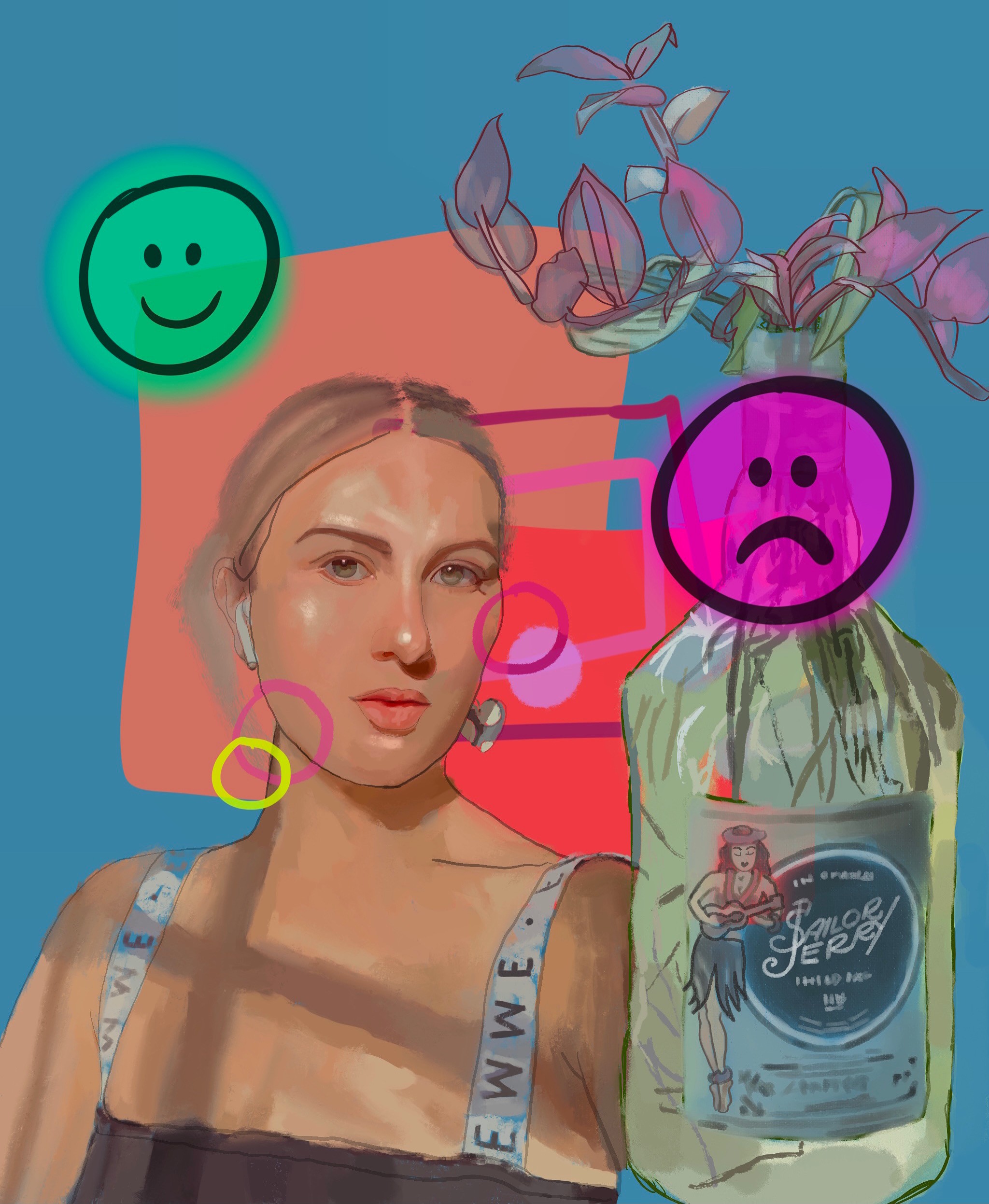I am an artist based in Chattanooga, TN, working primarily in painting. I explore identity and coping with grief through my work, specifically through self-portraiture. My paintings express a story in which I am the protagonist conquering personal growth, acceptance, and self-discovery. I am heavily influenced by social media, especially in the context of pop culture, and how it plays a role as a coping mechanism in my life. My work includes vibrant tones, informed by bright LED light bulbs, which drive the mood and composition of my multiple creative methods. I explore different mediums to challenge myself such as drawing, collage, needle work, sculpture, and performance. In 2021, I earned a BFA in Painting and Drawing from the University of Tennessee at Chattanooga. I met many of my lifelong friends in college and other supportive creatives. I believe the artists here are really growing the art community in Chattanooga and I feel privileged to play a part in that growth.