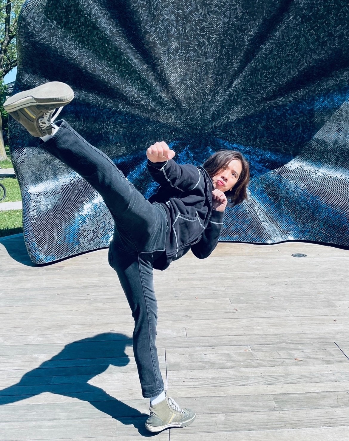 Initially, I simply posted a photo of myself striking a martial arts pose on Facebook, advertising my fusion martial arts class on social media. To my astonishment, the response from individuals in the film industry was overwhelming. Presently, our focus lies on conducting Fight workshops and preparing for the filming of our forthcoming action film. I firmly believe that each of us possesses a unique talent that can contribute to the world.