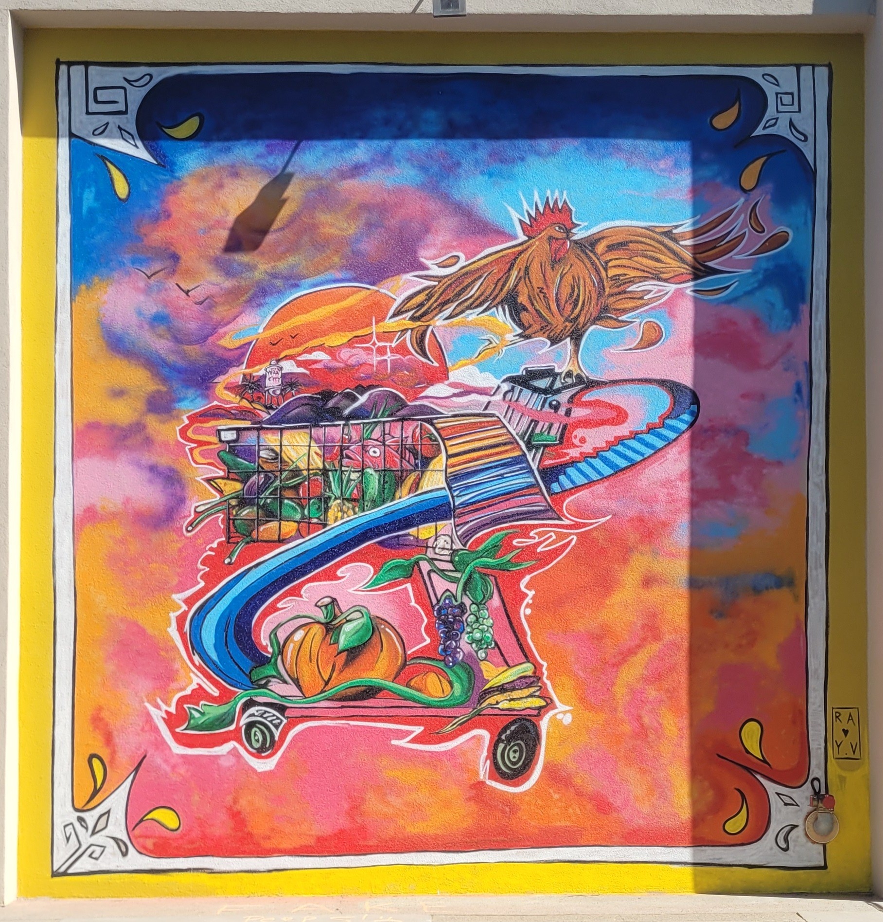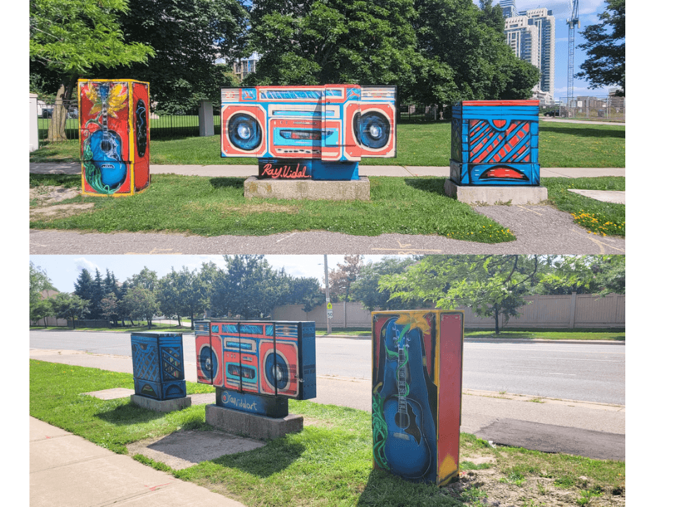 My name is Ray Vidal and I am a multidisciplinary artist, muralist, arts educator and musician. I got into art and music at an early age through my artistic and musical family. I remember being very inspired by my brother’s drawings, seeing him do graffiti, airbrushing and customizing clothing, skateboarding, breakdancing and getting deeply into art and music. I started following in his steps and getting into the same things. I would spend hours drawing my favorite cartoons I grew up on. Bring them to class in elementary and give my drawings out to my friends. Being encouraged by my teachers and friends to stick with my artistic passion. At the same time I picked up my dads acoustic guitar and taught myself how to play guitar at the age of 13. My parents encouraged me to excel at playing by suggesting I read music like my oldest brother. So I studied at the Ontario conservatory of music for 2 years. I was advancing so fast by ear that I left the conservatory to start recording, performing in bands on my own. I went to the Ontario College of Art and Design University to gain the skills and working experience I needed to become a full time artist to hone my craft and disciplines in the arts. After school I started teaching all age art programs, workshops and art reaches in various community centers and schools across the greater Toronto area. Working with various non for profit arts organizations and with the city for 3 years. Then I met my girlfriend who was an established muralist and artist that encouraged me to start doing art for myself and pursuing projects of my own. She encouraged me to apply to an open call for a skatepark mural. In a park I skateboarded as a kid. I got in and painted my first legal wall mural under the mentorship of Jeff Garcia known by his artist name Mango Peeler. This was the first of many mural projects that helped shape my career and help me grow as an artist and pursue my passion full time. Since that project many of those emerging artists I shared the mentorship with have become full time artists and are my collective peers that I continue to work and collaborate with. I got to meet many artists, arts organizations and gain experience in public art assisting my girlfriends projects and other friends projects. Getting the proper training, hands on experience, industry skills, entrepreneur businesses know-hows and discipline needed to do it on my own. I am very grateful for every project that I have been able to be a part of. Being able to connect with different people from different communities and continue to build lifelong meaningful relationships with them is what it’s all about. Every single new and unique experience I get working on different projects collectively with others or independently. All inform and mature my practice with time and experience. The more I create, the more insight I gain into myself, my practice, the mediums I’m using, my skills, knowledge and teachings I’m sharing and learning. That continuously reshapes my practice, work ethic, style and what I want to say in my art. I am always learning, unlearning, relearning and growing as an artist. Endlessly creatively problem solving, critically thinking and pushing myself outside my comfort zone with every new project. Working through all the challenges and hardships that come with it. I feel like each project serves as a window and time capsule into a collective timeline. Where I see traces of myself and the community coming together in the form of public art. That I can date and relive specific points in my life in place and time of who I was, how I was feeling, who I was connecting with and impacting. Reflecting on all the impactful moments of celebration and connection as a community made through arts and culture placemaking. That helped bring more vibrancy, insight and meaning into my life and others in the community. Bringing more culturally diverse stories and imagery into our cities infrastructure, conversation and history. Sharing my own story and uplifting other people’s voices in public spaces.