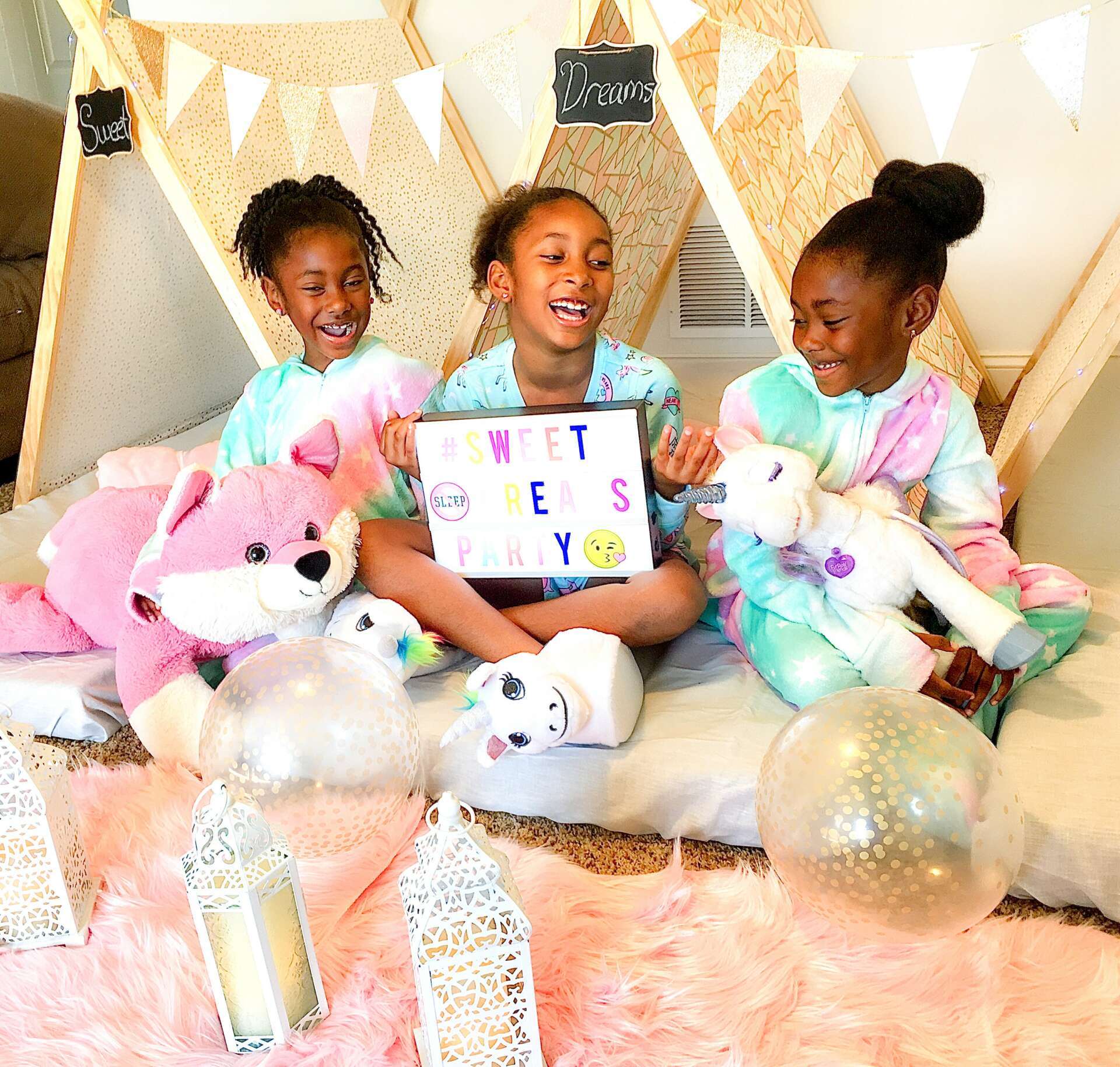 My name is Raylicia Young I am a mother of three beautiful girls and I started this business after getting laid off from my job at a local college. I began my journey back in 2017, I loved Pinterest at the time and would create cute little mood boards. From my future wedding down to my wardrobe. I had randomly came across this business in Australia and these adorable little sleepover tents. I thought it was so creative and I wanted to do one for my little girls! I searched all over and couldn’t find anything in the U.S. from my google search about them! I knew I wanted to do something outside of working a 9 to 5 and I was on a huge hunt to figure out what worked best for me. I decided to go for it! I planned for months and waited until my severance pay came in and decided to use the money for my inventory! I started sewing my fabrics and building my tents and eventually came up with this super awesome sleepover set up! I used my girls as little models and everyone loved it! I slowly began to advertise for $15 a week and I was shocked by the number of people who were interested in learning more and booking with me! We were able to give customers a new way to plan their parties. Our parties are already pre-designed, so it really takes the guesswork out of trying to create the perfect party for your guests! We offer all of the bells and whistles from our sleepover set ups to even our services that we offer locally such as our Outdoor Belle Tents and Luxury Picnic Services. We have grown so much over the years thanks to our customers and we are beyond excited to take it up a notch and take it to the next level! We are extremely proud of our growth with not only the services we offer and how we evolved in our branding, but also in how creative we have gotten with our party set ups!