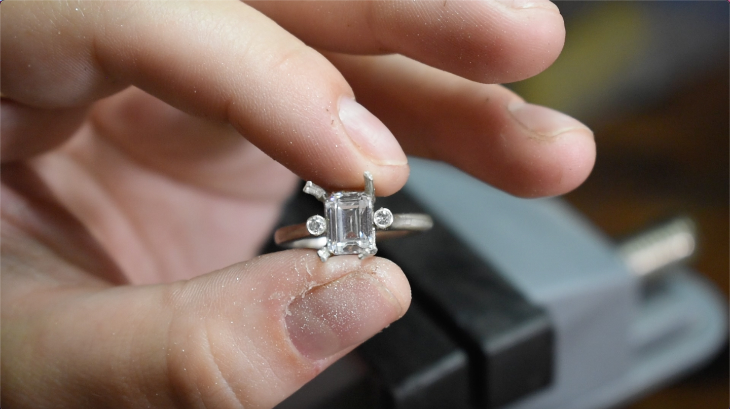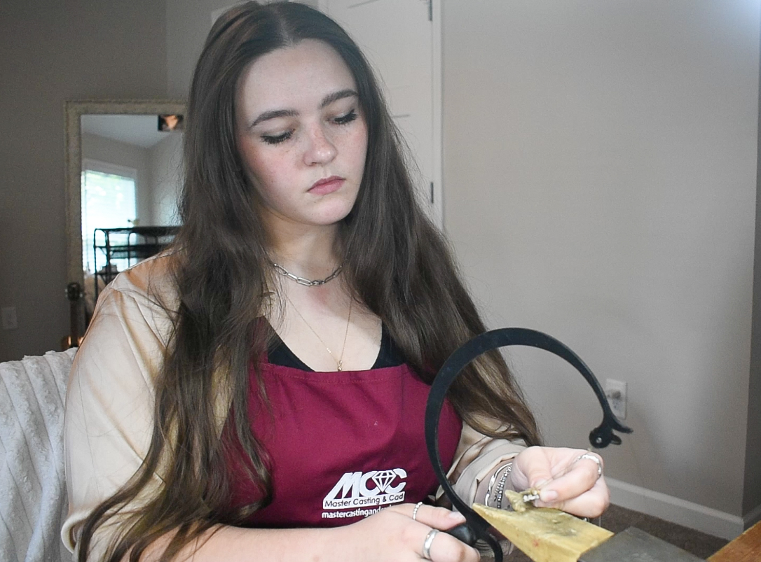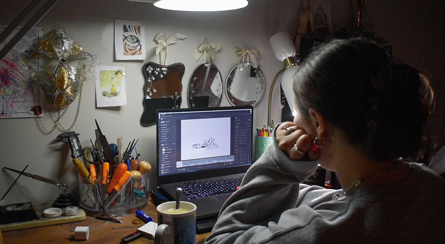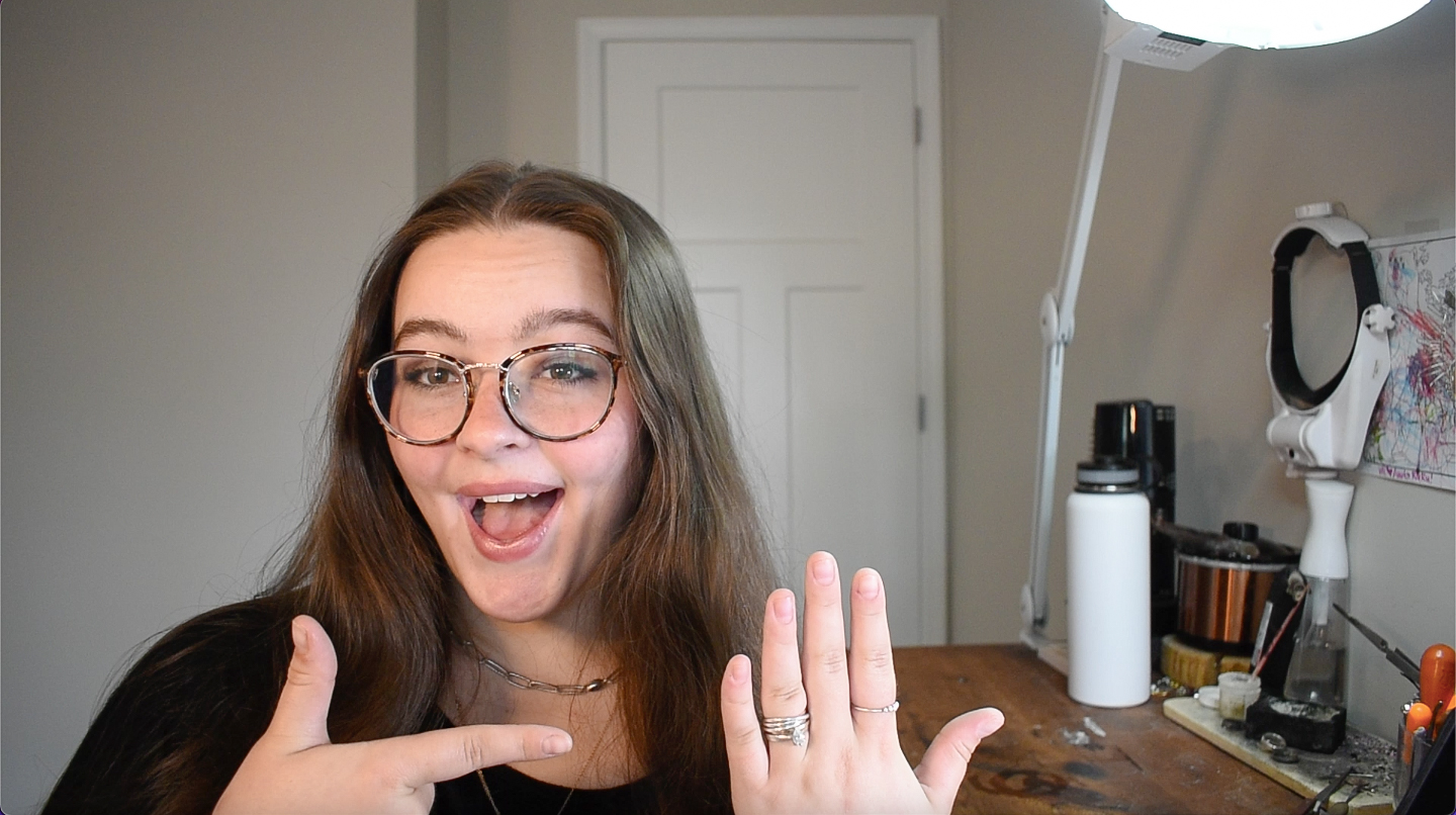 I fell in love with jewelry making after seeing a TikTok of how to make a wire wrapped ring. It was with cheap craft wire and beads from Walmart, but seeing that I could make my own ring intrigued me. I’ve always been someone who could not find rings my size in stores. Seeing that I could make my own had me so excited. It was sloppy, scratched, and eventually turned my finger green, but it was handmade by me and it fit perfectly! I immediately started learning the craft of wire wrapping through TikTok, Insta Reels, and YouTube videos. I started seeing more methods of jewelry creation and found the art of metal smithing! Seeing that I could make high quality, genuine gemstone and diamond jewelry that could last lifetimes was the next step for me! I saw creatives making high end jewelry and it had me dreaming… What if I could make engagement rings or wedding jewelry? What if someone wore my jewelry on the red carpet? This was definitely a jump from wire wrapping, as the process requires precision & hard work. It also meant working with very expensive stones and materials that gave me little room for error. Talk about pressure! I slowly but surely saved up enough to buy the bare minimum of tools to get started and practiced every day. I started with the basics of sawing and soldering. This took me a bit to get used to. Controlling the heat from my torch, applying the right amount of solder, without melting the metal formed was a challenge as a beginner! You know what they say, practice makes perfect! I’d come home from my full-time job, pull up some YouTube tutorials, and get creating everyday. As I began my metal smithing journey, I started to create YouTube videos of my own. I have shared my process of creation as a beginner jeweler, with all of the mistakes & odd, self taught methods included. I consistently started making YouTube videos each week. This pushed me to create something new weekly, trying different methods and styles. From stone setting diamonds, to melting down customers heirlooms, I kept sharing my growth with you. I marked my first year as a self taught jeweler in June 2025 by creating my first engagement ring! It was such a heartfelt moment as this was a goal from the very beginning! I cannot wait to grow my skills each year, creating high end jewelry and sharing every little detail along the way!
