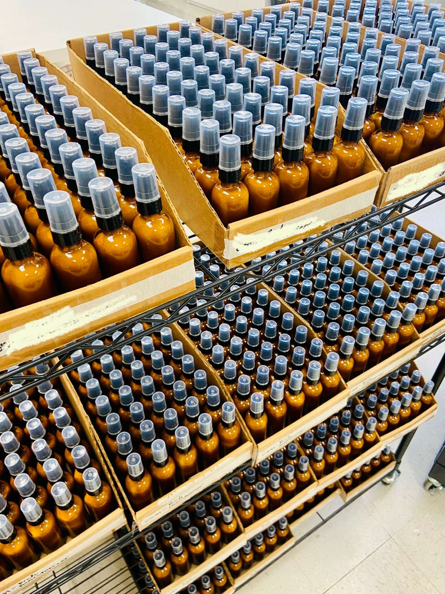 Besides experimenting with lotion basics, over the years I have had to learn, re-learn and adjust our production. Every time you scale up you may need to either re-work the formula or re-work the procedure on how to run the run. Our larger runs, where we make and fill thousands of products are always a fun challenge. You have to decide to do those either in multiple small batches or see if they can be adjusted and made and filled adequately in a larger version, then choose, set up and optimize the machines and ingredients and procedures to run properly.
