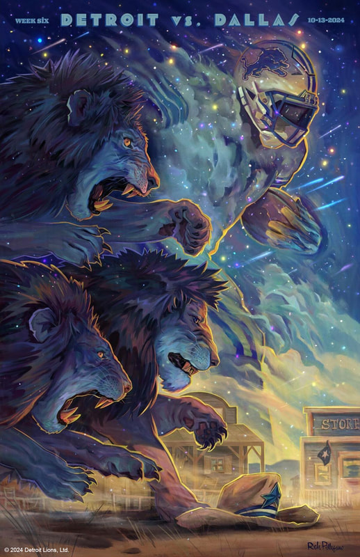 My name is Rich Pellegrino, and I am an illustrator and painter based in Massachusetts. I have a BFA from RISD and an MFA from NEC. My clients range from film and TV studios such as Warner Bros. creating licensed posters for their properties to book publishing kids books and young adult Science Fiction fantasy picture books. I’ve moved into gallery work and have exhibited globally. And recently I have worked with professional sports teams creating illustrations for Gameday posters, and their social media channels. Some project highlights are creating the faux Egon Schiele painting scene in Wes Anderson’s Grand Budapest Hotel film, beer label for Blue Moon, marketing campaign Xbox’s acquisition of Bethesda games, and a illustration of Tom Brady used in the NFL West Coast headquarters based in California.