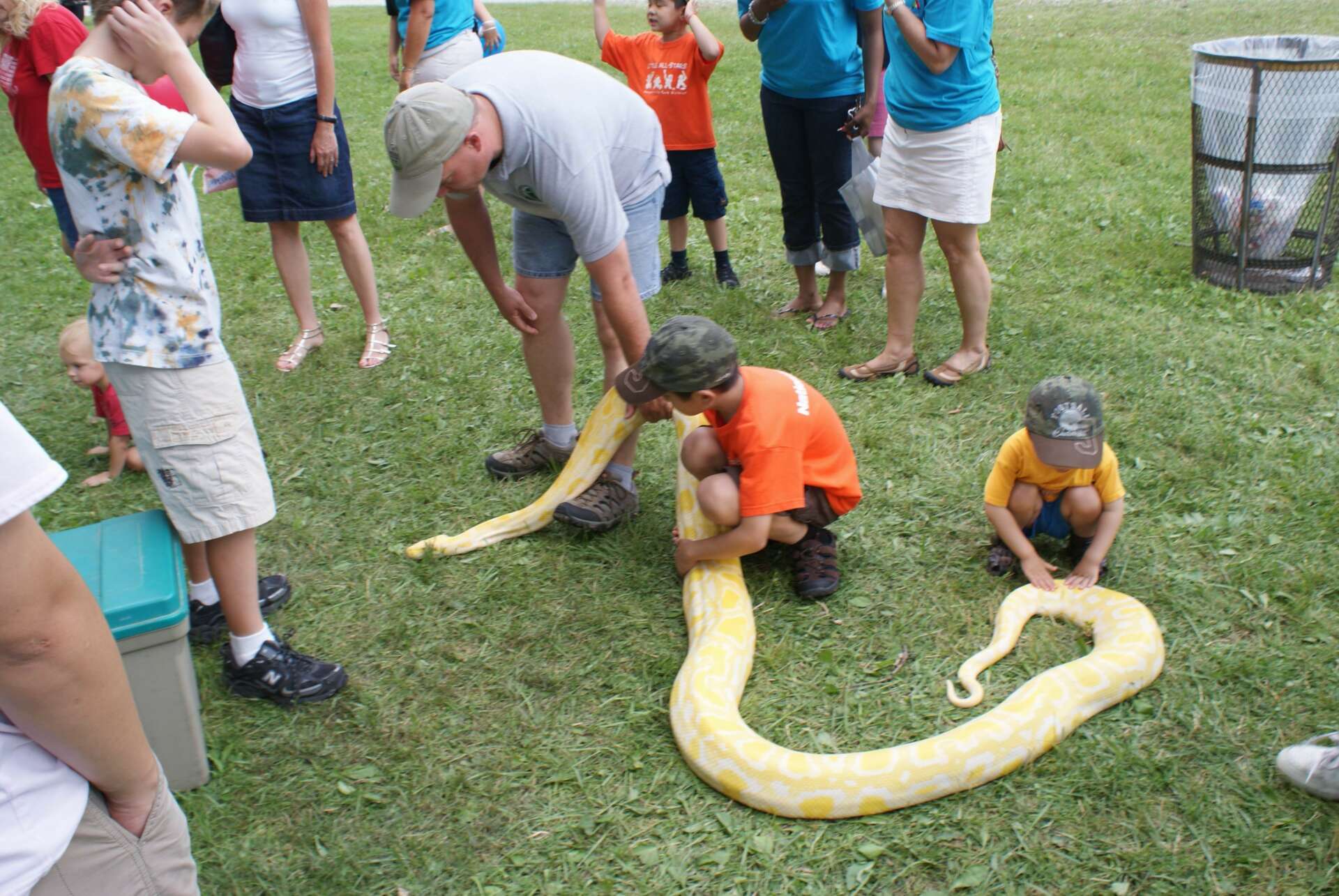 Photo with small python: photo credit to Steve Barten, DVM Photo with DuPage County States Attorney Bob Berlin: no photo credit provided. Photo with big alligator: photo credit to Bob Bavirsha Photo with big python: photo credit to Dick Buckholz