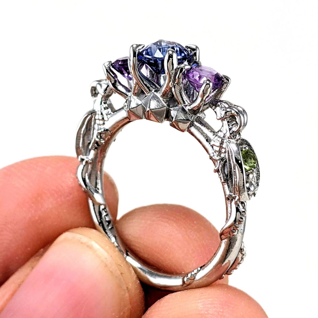 Over the years I’ve honed my craft, but my core values have stayed the same: Love, Lore, and Legacy. I create pieces that connect us to the people, places, and passions we love — from our romantic and family relationships, to anime, DND, video games, pets, and personal symbols. Our personal stories or ‘lore’ if you will, is woven into each design through custom engravings, symbols, and meaningful gemstones. As a final flourish, Legacy ensures they last, crafted with traditional lost-wax casting in silver, gold, and platinum using gemstones chosen to stand the test of time. I’ve always imagined someone discovering one of my pieces centuries from now like buried treasure — getting that magical feeling of finding something you didn’t even know you were looking for.