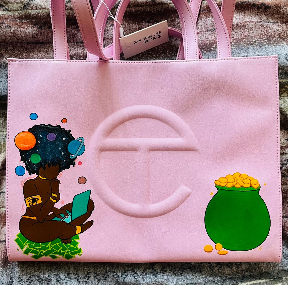 I really get stumped when I’m asked about my creative work because I create off canvas as well. I consider myself a multidisciplinary artist because I also make and design clothes, hand paint clothes and shoes, furniture, vintage electronics and I do murals as well. I dabble in photography for fun as well. I do some of everything so I hope that answered that question lol.