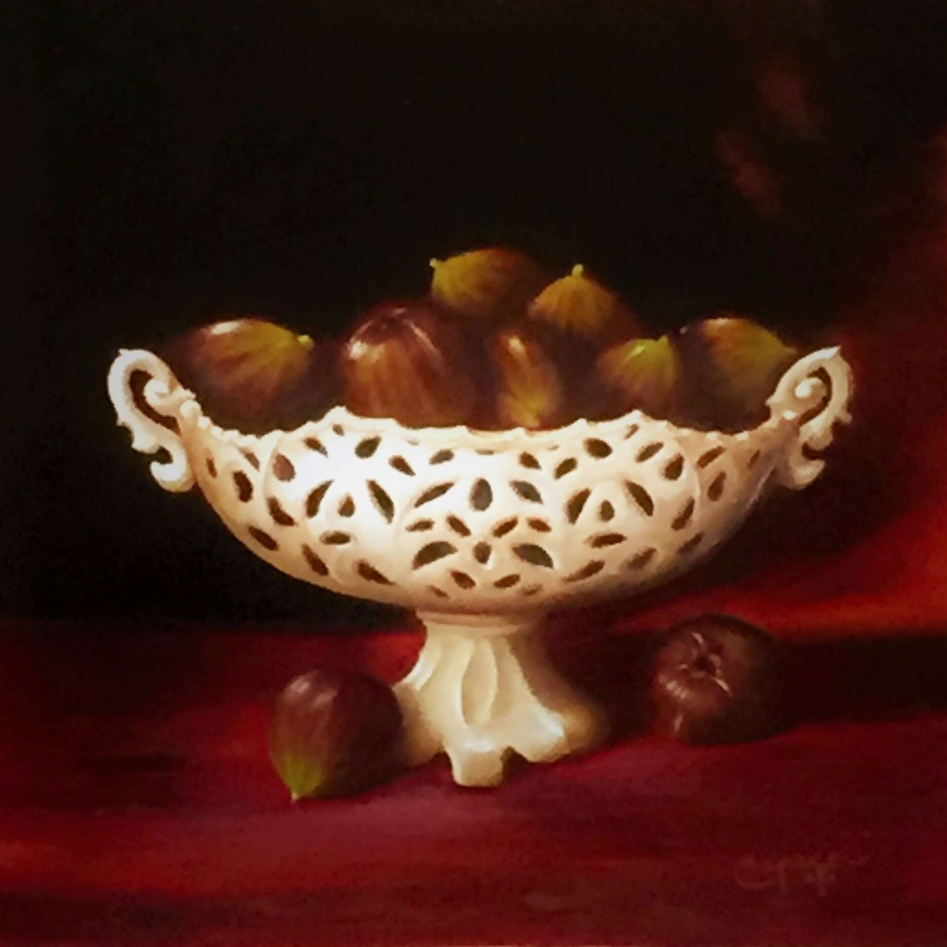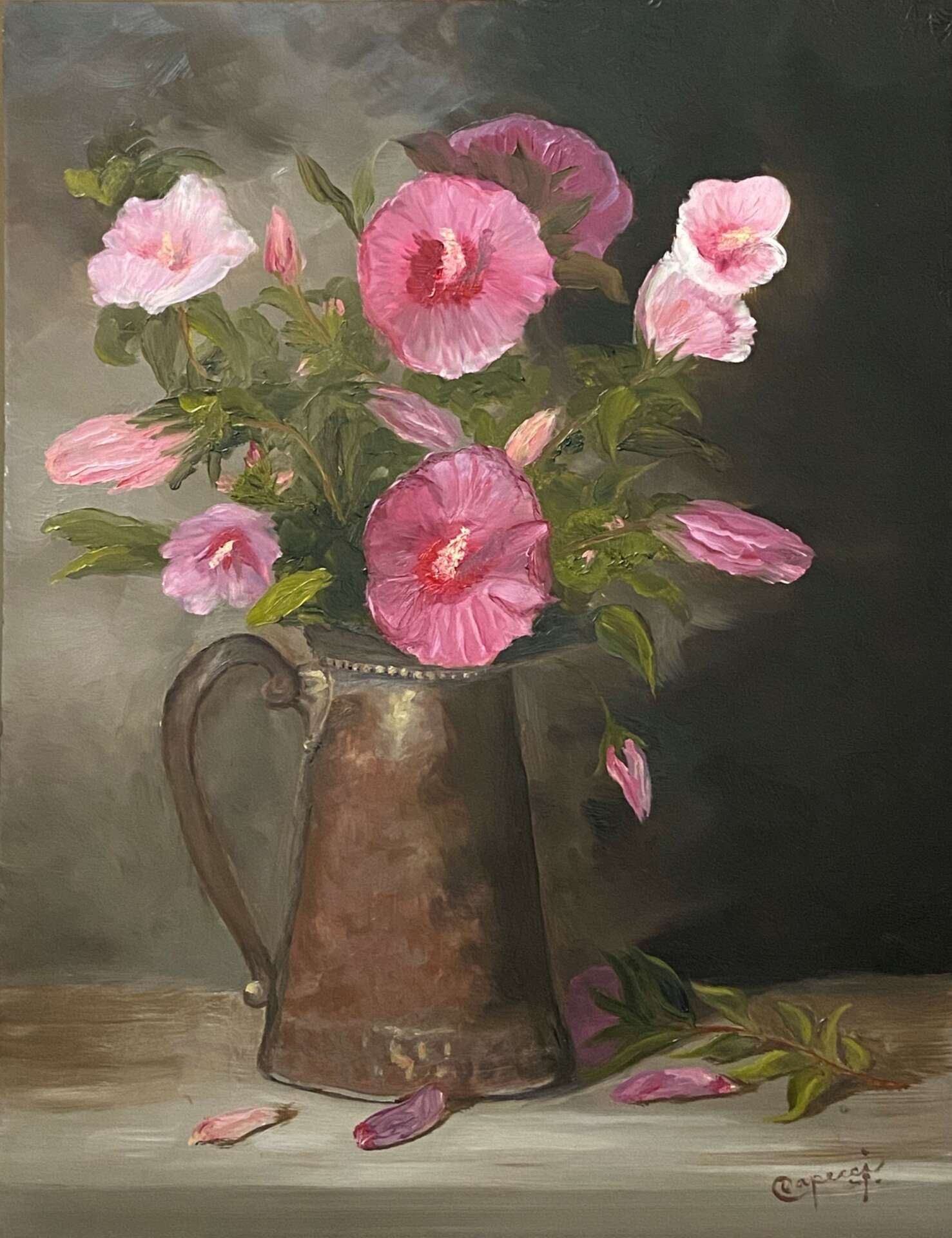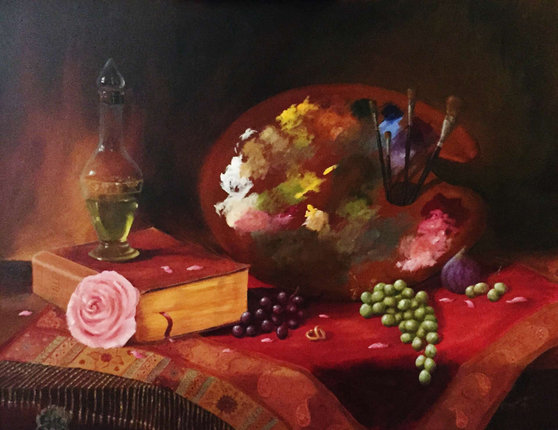 I began drawing still life at about the age of 5. I sat one of my sister’s toys (she was a toddler) on a table and drew it in chalk on a chalkbord. From that point, I would ask my mother to give me items to draw. I used to feel as if my heart was on fire! I worked with regular pencil on cheap paper but would later turn to charcoal pencils to get their deep black but being in pencil form gave me the control I wanted. Years later, in high school, at the urging of an artist friend of mine, I was introduced to her art teacher and allowed to attend his fine art class. I was exposed to other mediums, pastel, watercolor, etc, but once I was exposed to oil painting, I fell in love!! To stand with palette in hand in front of an easel was so satisfying and exhilerating! It was where I was meant to be! The smells, the tubes of paint, the colors, the brushes all became a part of me, That’s when I knew I wanted to be an artist.