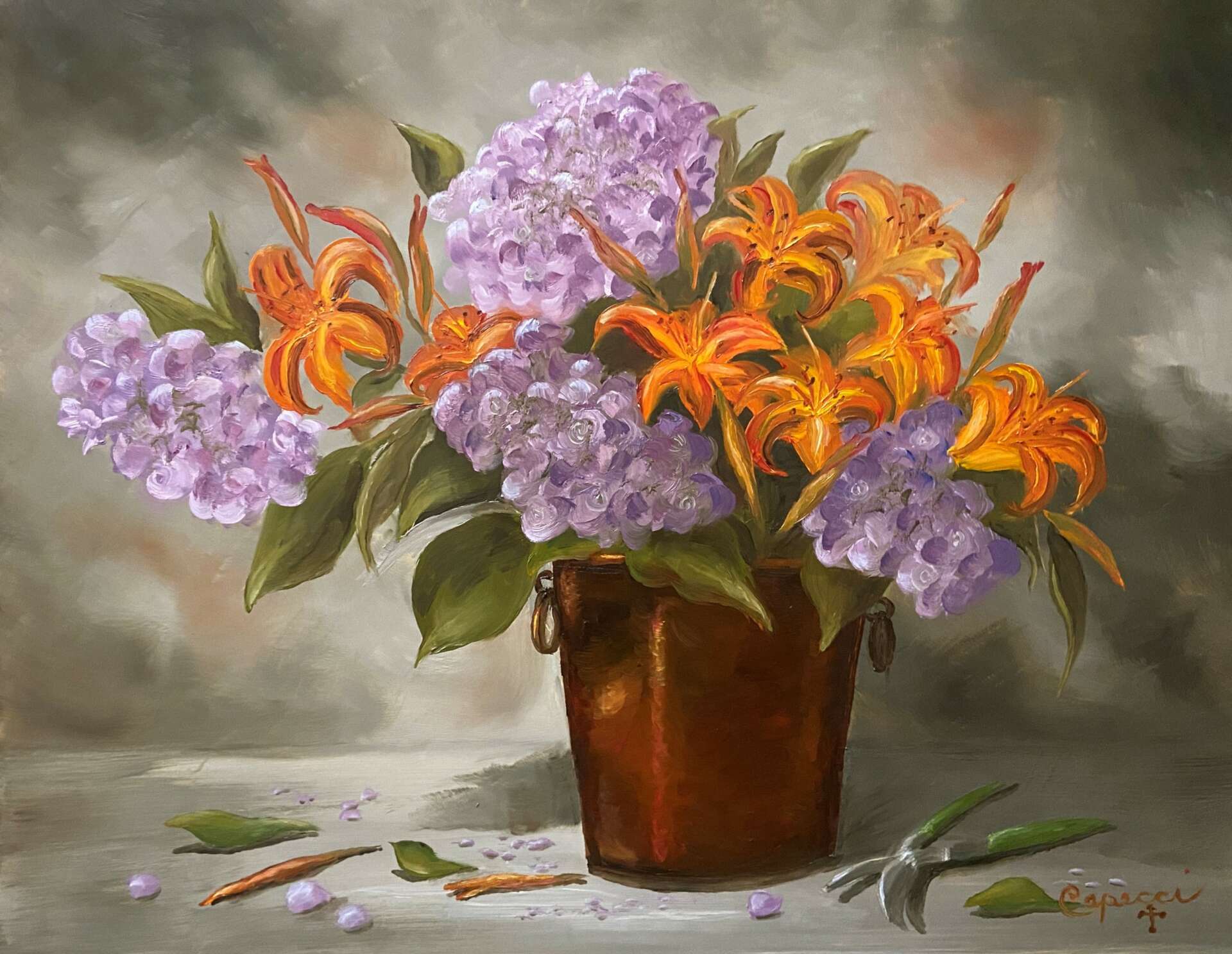 The common quality that my paintings have, whether still life, from reference, or plein air, is that they are painted from my heart. It seems my fans embrace my very essence within each painting. Once framed in the perfect frame, they are ready to be shown. I collect frames and have hundreds of them waiting for paintings. Most frames will ‘tell’ me what kind of painting they should go around. That will also tell me what size the painting should be.to fit the frame. Most people find this a backwards process but seems quite natural to me and works for me. I guess it’s that freedom, intuitiveness, and creativity that I find essential in every part of my life.