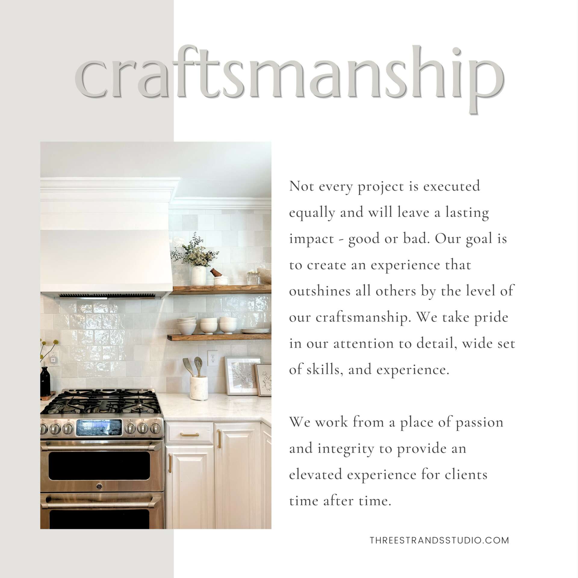 Our main goal as Three Strands Studio is not only to transform a space that functions well and looks pretty dang good but to transform the atmosphere of the space that impacts the clients long after we’re gone. There’s beauty in the transformation and when you think about it, we all get excited when we see a cocoon become a butterfly. But we don’t always love what comes before the transformation or how long the transformation takes. Many homeowners find themselves stuck or don’t know where to start so they become decision paralyzed; not making any progress towards their dream remodel. Others thought they knew what they wanted but when they tried it, it didn’t turn out anything like they planned or envisioned so then they come afraid and stop so they avoid making another mistake. That’s where we love to come in! We desire to help out everyday homeowners who don’t necessarily have the vision, skill, knowledge, or time to even begin the first step, let alone take on a full remodel. Every individual deserves a place to call their own – a space to create memories, find solace, and feel secure. We strongly believe that every person should have access to a home that reflects their unique story and lifestyle, regardless of their budget and we believe we are the Studio that can achieve this for them.