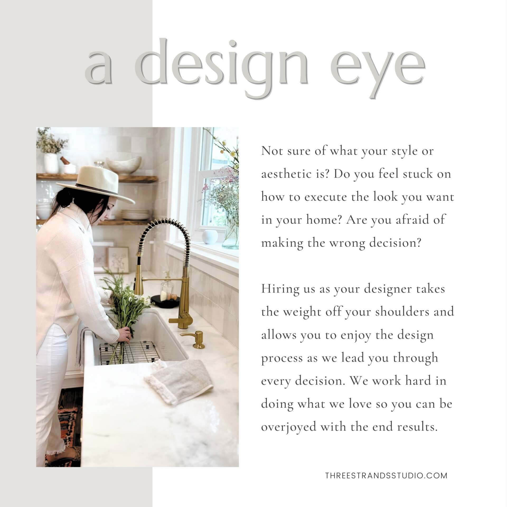 Our main goal as Three Strands Studio is not only to transform a space that functions well and looks pretty dang good but to transform the atmosphere of the space that impacts the clients long after we’re gone. There’s beauty in the transformation and when you think about it, we all get excited when we see a cocoon become a butterfly. But we don’t always love what comes before the transformation or how long the transformation takes. Many homeowners find themselves stuck or don’t know where to start so they become decision paralyzed; not making any progress towards their dream remodel. Others thought they knew what they wanted but when they tried it, it didn’t turn out anything like they planned or envisioned so then they come afraid and stop so they avoid making another mistake. That’s where we love to come in! We desire to help out everyday homeowners who don’t necessarily have the vision, skill, knowledge, or time to even begin the first step, let alone take on a full remodel. Every individual deserves a place to call their own – a space to create memories, find solace, and feel secure. We strongly believe that every person should have access to a home that reflects their unique story and lifestyle, regardless of their budget and we believe we are the Studio that can achieve this for them.