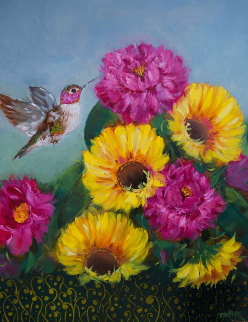 I’m a self-taught floral and botanical painter working from my home studio in Bothell, Washington. I’m an award-winning artist and enjoy creating vibrant floral, botanical and garden paintings that pay homage to the immense wonders of Mother Nature. Being an avid flower gardener and nature enthusiast, creating colorful garden scenes with playful and whimsical pollinators is what I enjoy most in my art practice. By blending detailed designs, symmetrical patterns, and doodles inspired by Zentangle and other doodling art forms with my floral subjects, I want my viewers to experience the texture and movement in my artworks.