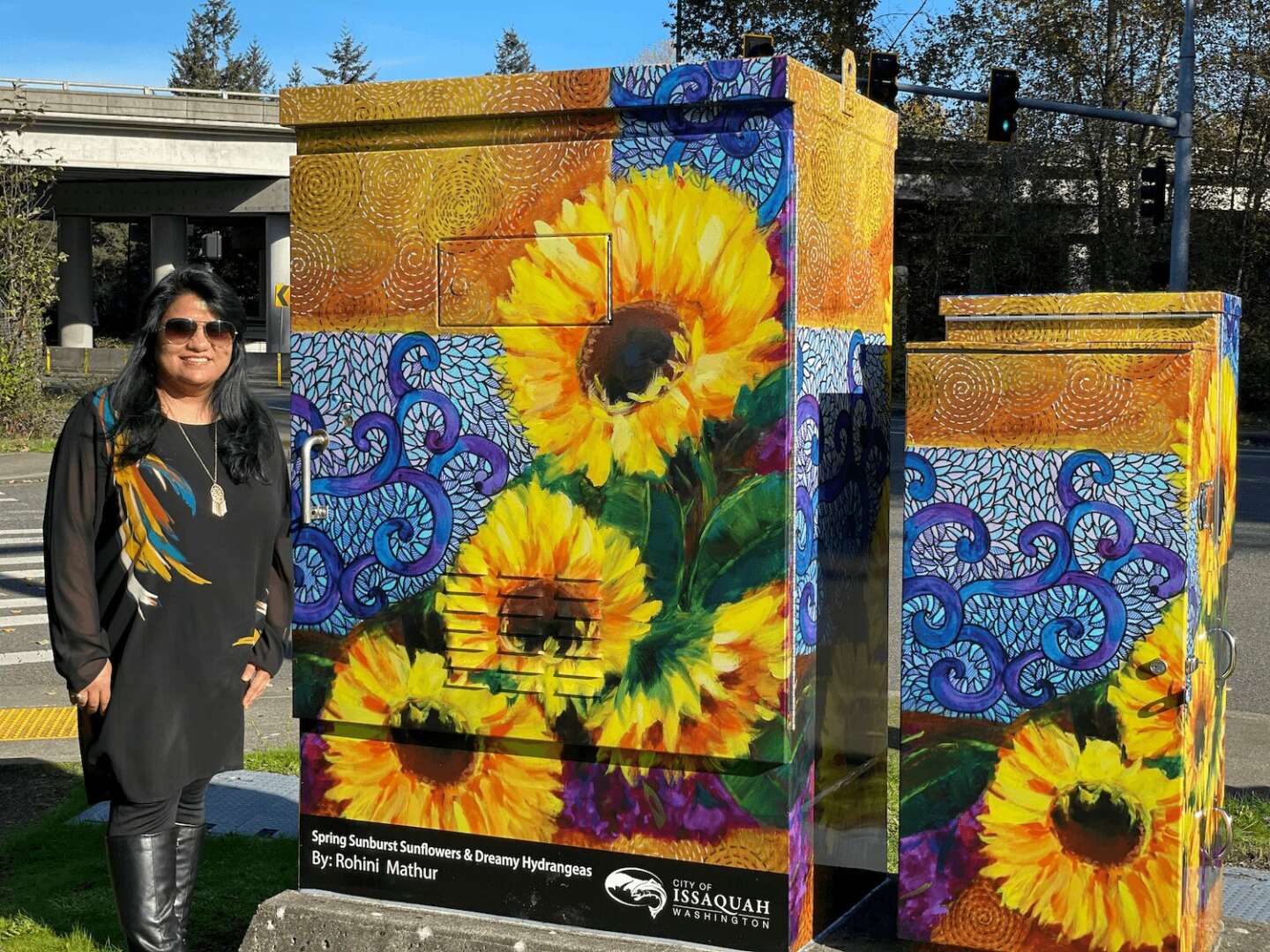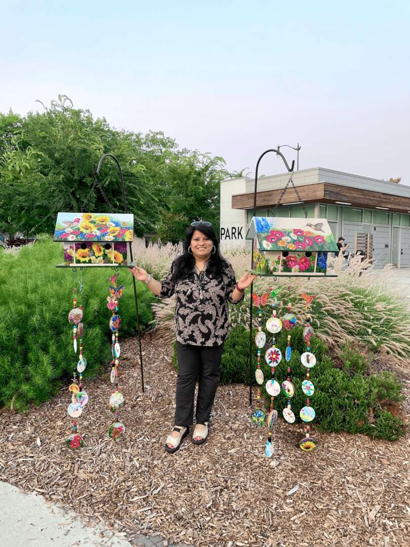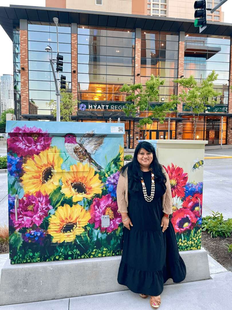 I have won several accolades and awards and have been juried into several exhibitions in Washington and Oregon. I’m also a Public Artist with art installations at City of Bellevue, Issaquah, SeaTac, Redmond, Mount Vernon and paintings that are part of City of Kent Public Art collection. I have been awarded with the City of Issaquah Public Art Grant this year and enjoy collaborating with local art communities to spread joy, hope, positivity and color through my work.