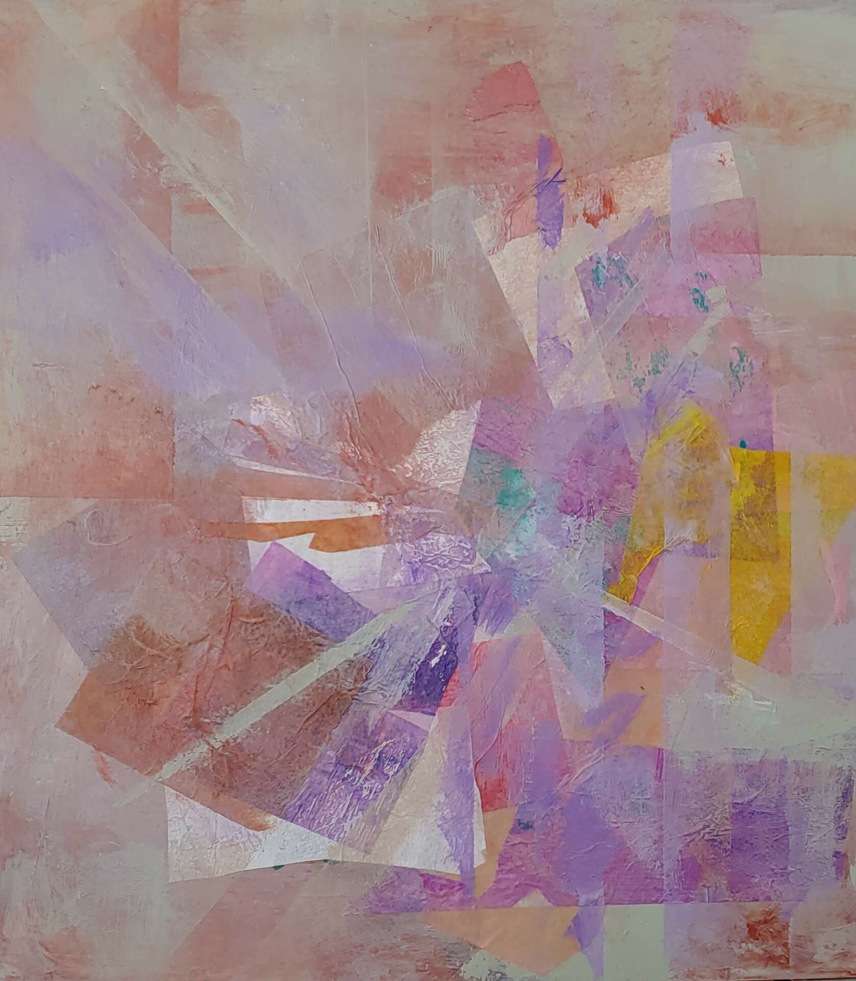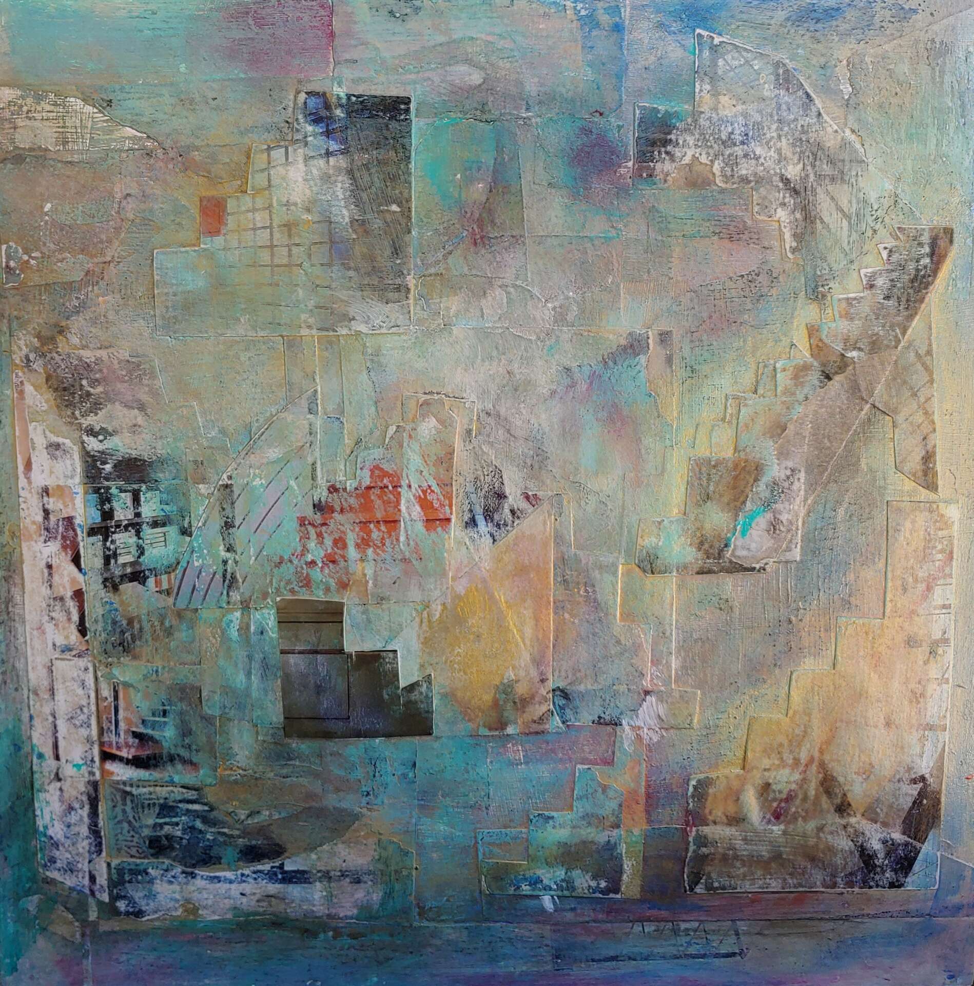 I was trained as a sculptor working in marble and metals. I later became a mixed media abstract artist. I have taught in South Carolina schools in their Artists in Education Program. This enabled me to continue my work. I also gave workshops in mixed media in arts organizations. Teaching has subsidized my artmaking. When starting a piece I don’t have a preconceived idea of what it’s going to look like. I start with layers of paint, papers until I feel I have a coherent idea. I then fine tune the image. As an artist, I try to stay true to my vision. Passion and courage has sustained me and my artwork.