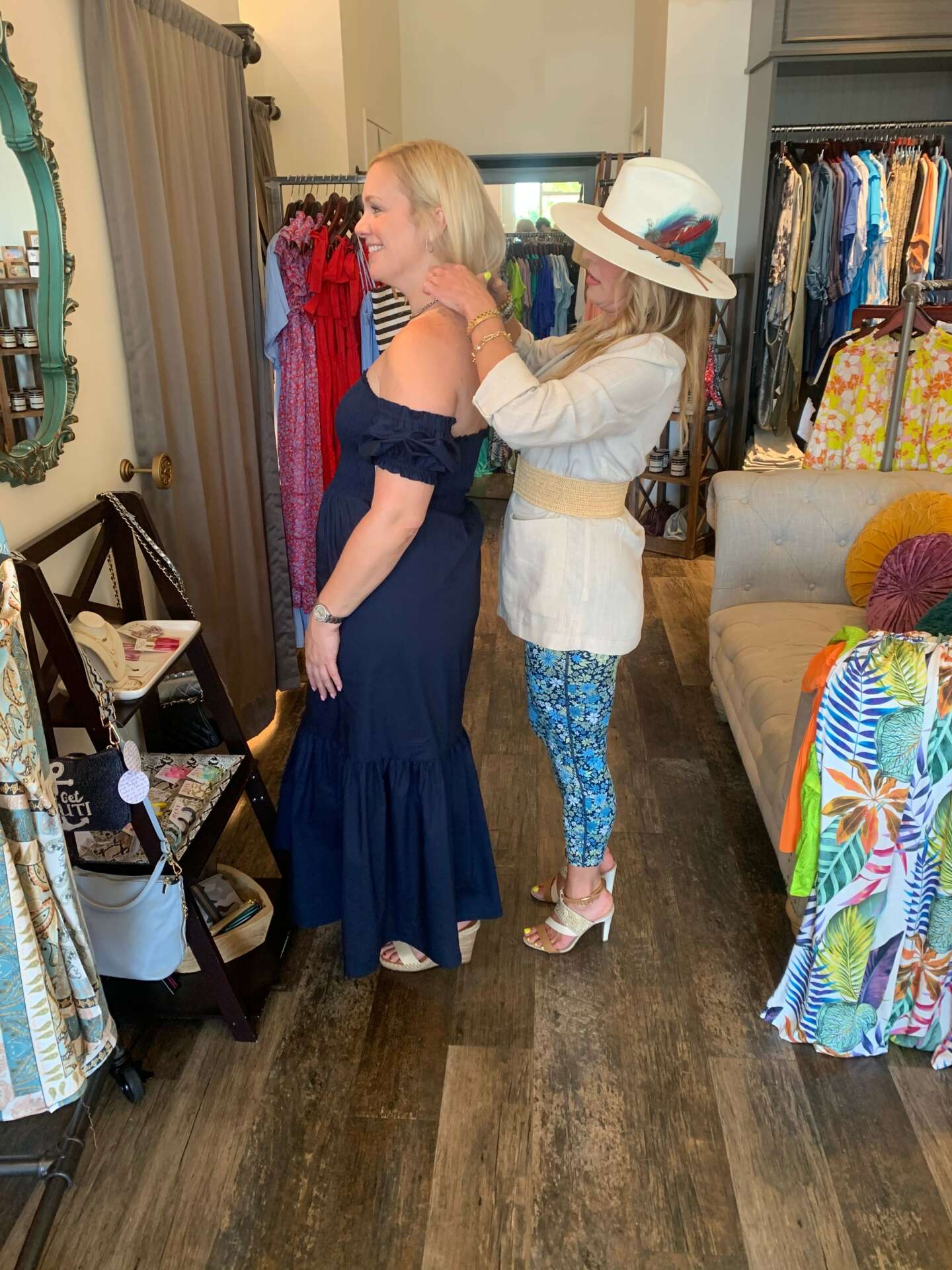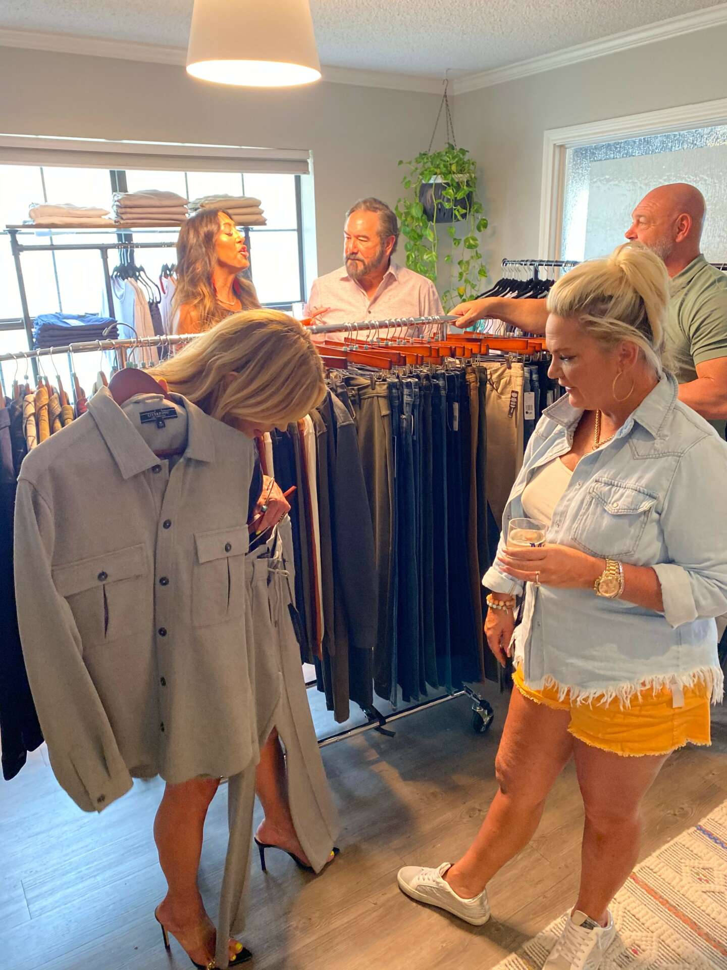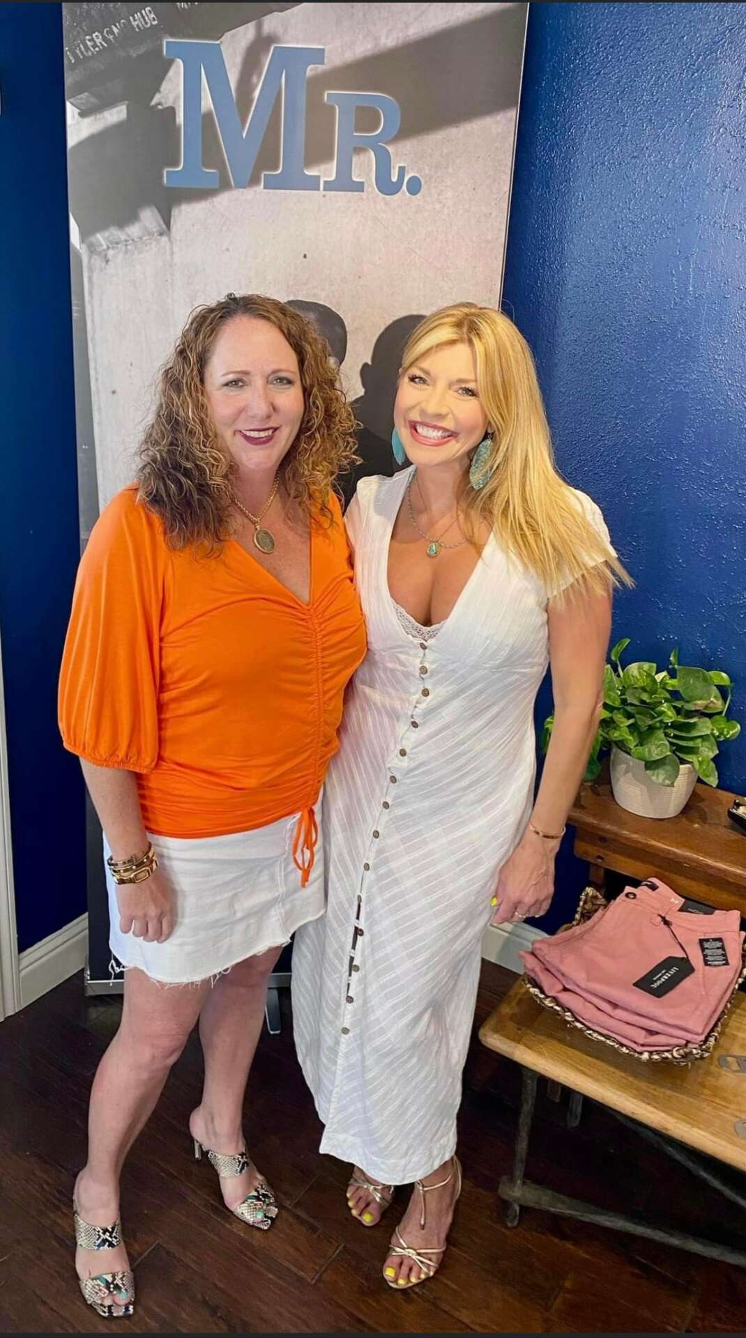 I started in the fashion industry in college, but on the wholesale side, as a sales rep for various designers. Later I began styling on the retail side and quickly found that was much more fulfilling. I love people and connecting. I have since been styling women for 12+ years and it still fires me up. I do a Facebook live fashion show on Wednesday called “Wine Down Wednesday with Rosie” for Scout & Molly’s Southlake, a local boutique, as well as a Instagram stories with our new arrivals called “Try-On Thursday.” I also put orders together and style there every Thursday. Last year I took on a new venture and started a men’s boutique called MR. The idea came about very naturally upon noticing that men really didn’t have many options outside of corporate retail. The business model is similar in that we go live on social media with new arrivals and give examples on how to pair pieces to get the most out of an item. We have had great success since we started last September, and now have a store front in Downtown Roanoke where we host events, shoot our lives, and take private appointments. It’s meant not just to sell clothes, but to build confidence in trying new looks. Men’s fashion for the most part is simple, and we love that. We want our MR’s to feel like themselves but also fashionably relevant. So really whether dressing women or men we just want the customer lifted and confident about themselves through fashion.