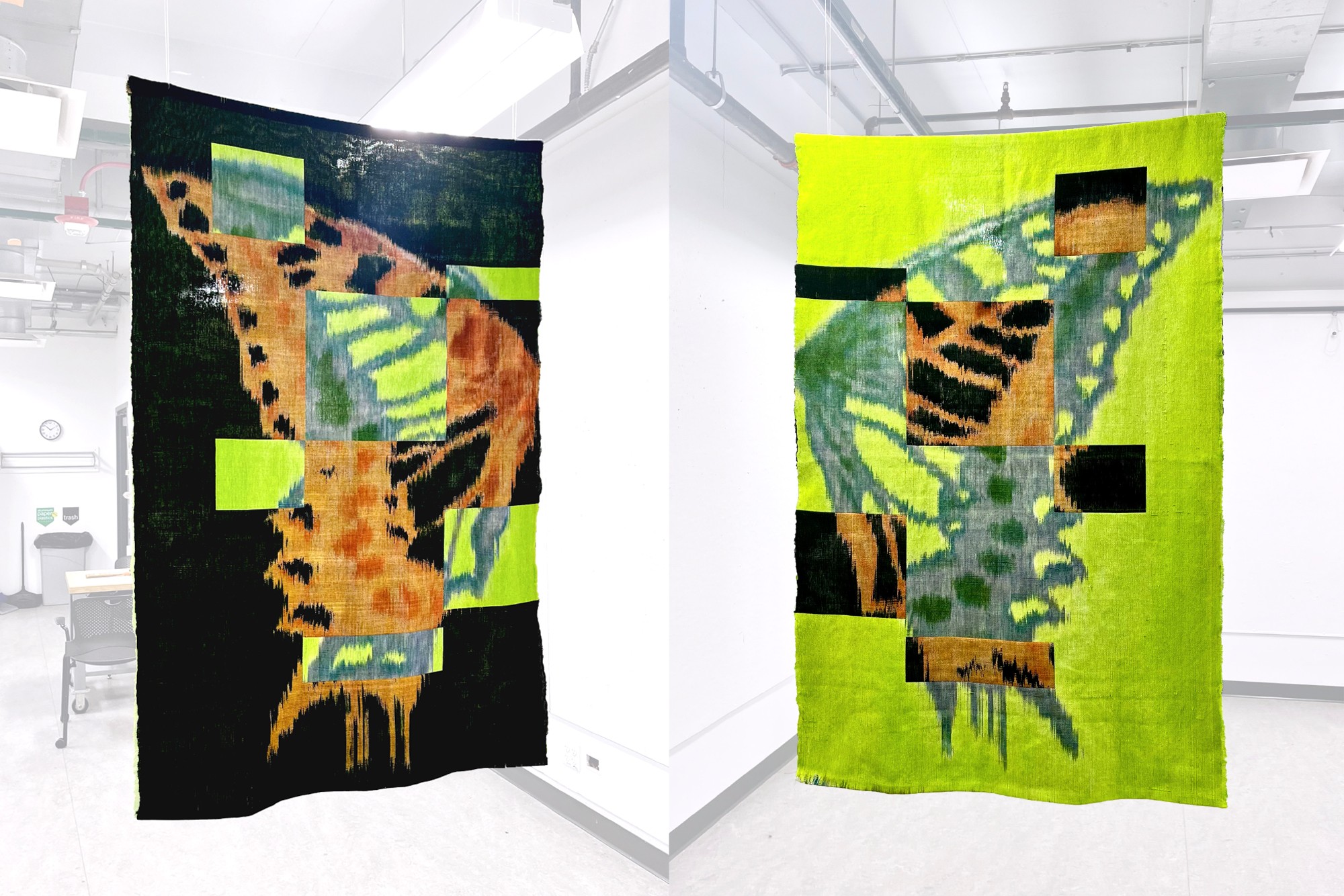The most meaningful project I’ve worked on is Folded Butterfly, a 30×60-inch woven piece created using double weave and warp painting. Inspired by the way butterflies fold their wings to conceal vibrant colors, I wanted to express this idea of hidden beauty and self-revelation.