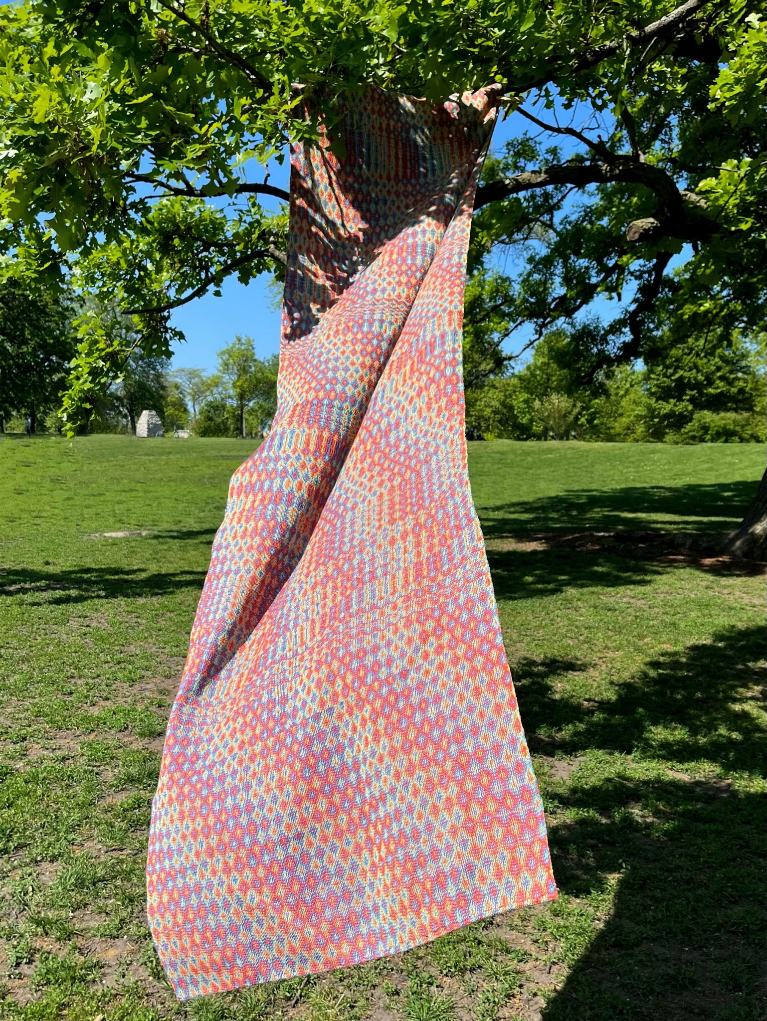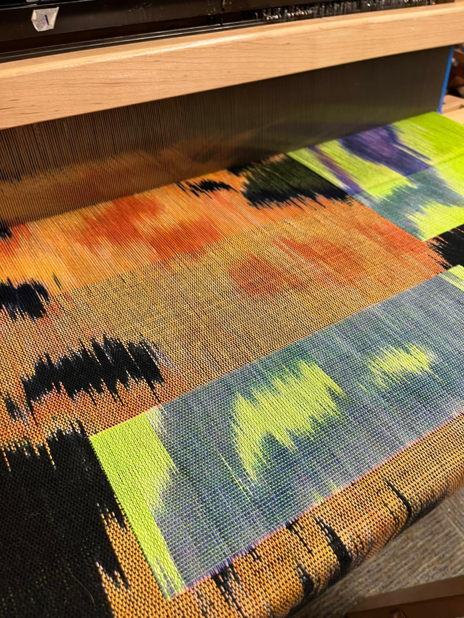 To capture this, I painted two warps in contrasting colors and used double weave to create ‘windows’ that reveal glimpses of each painted warp—like wings just starting to open. This project holds deep meaning for me because it reflects themes of hidden identities and the beauty in subtlety, concepts I resonate with on a personal level. Working on Folded Butterfly was both technically challenging and emotionally rewarding, symbolizing strength and vulnerability through woven layers.