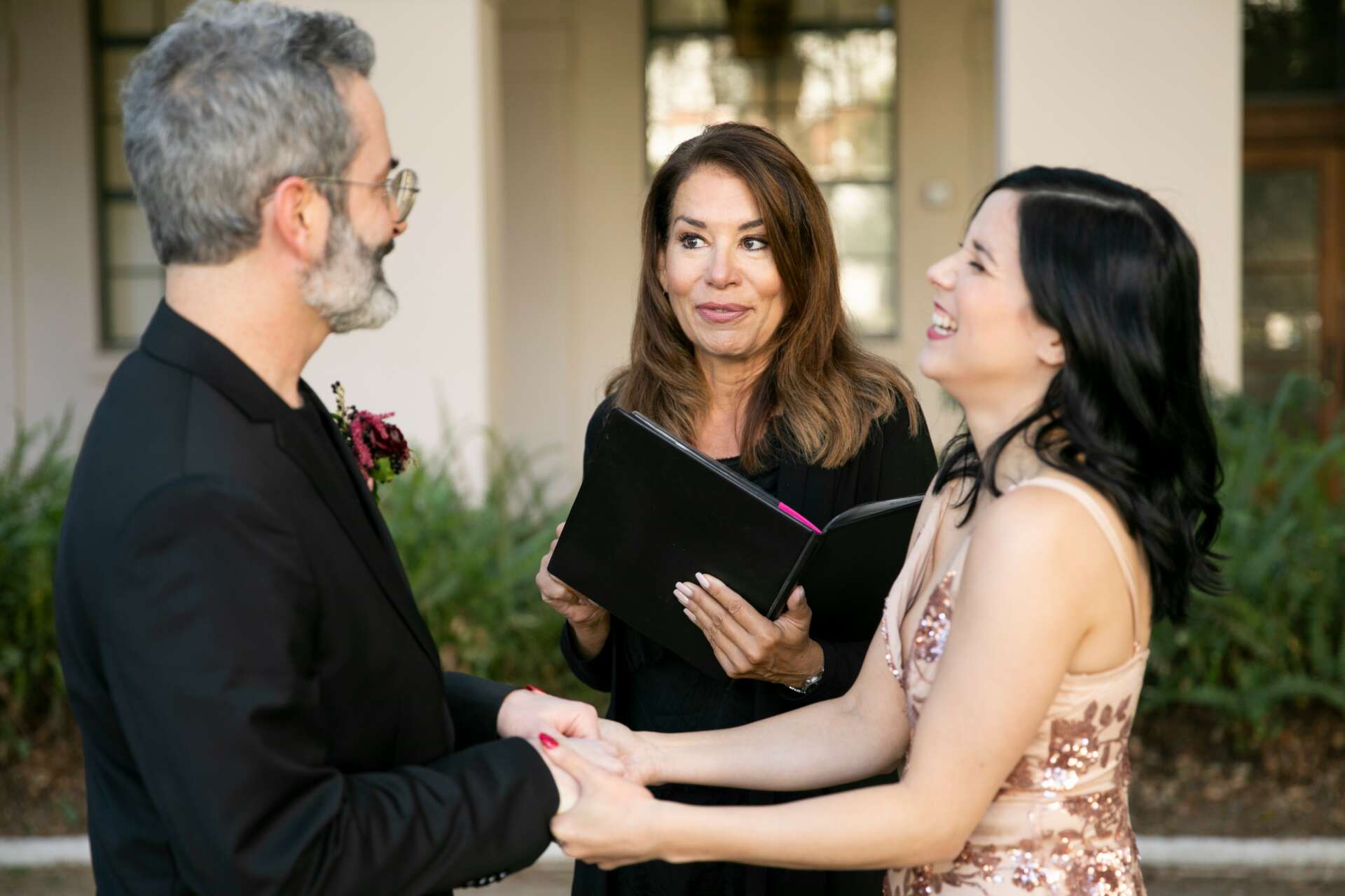 Professionally I am an eclectic mix of Wedding Officiant, Lifestyle and Happiness Coach, Host, Speaker, Commercial Actor and Communication Specialist/Speech Pathologist. Underneath everything I do is a strong desire to offer others support, compassion, a safe haven, deep listening, an open mind as well as a fresh view on life and unique options that others in the industry are not offering. This is the theme running through all my businesses coupled with a strong desire to really make a difference. Each of my entrepreneurial pursuits came about in a unique way from personal experiences that led me to each business. My wedding business started after I spoke to a large group of people about living life authentically from the heart. Someone in the audience approached me and told me they loved my talk and asked if I would consider being the officiant for his sister’s wedding. I had no experience in this area at the time and told him so but also commented that it was an interesting offer! I went home, pondered his request, researched how one becomes an officiant and accepted his offer. My first wedding ceremony happened 8 weeks after. It was very well received and I absolutely loved every moment of it! At that particular wedding, someone else asked me to officiate theirs! I accepted the offer and quickly realized that I loved being a part of each love celebration and that I had something unique to offer and could work from the heart. I saw that there were many “template” weddings going on and vowed that my service to brides and grooms would never be from a template. Now I have a thriving wedding business and have officiated close to 400 ceremonies locally and abroad. Most importantly, what I do has been well received. As a side note, my own wedding many years prior ended up being far from what I envisioned, in many ways a disappointment I could never “fix” or recapture. So this further stoked my fire to never allow this to happen to anyone else. I also offer support through my style of life coaching to my couples. From all the weddings I have done over the years combined with my desire to support others in their journey of self-acceptance, self-love and happiness in being a couple, I am now in the process of producing my own TV show about Celebrating Love. Stay tuned! Life has an interesting way of revealing itself…