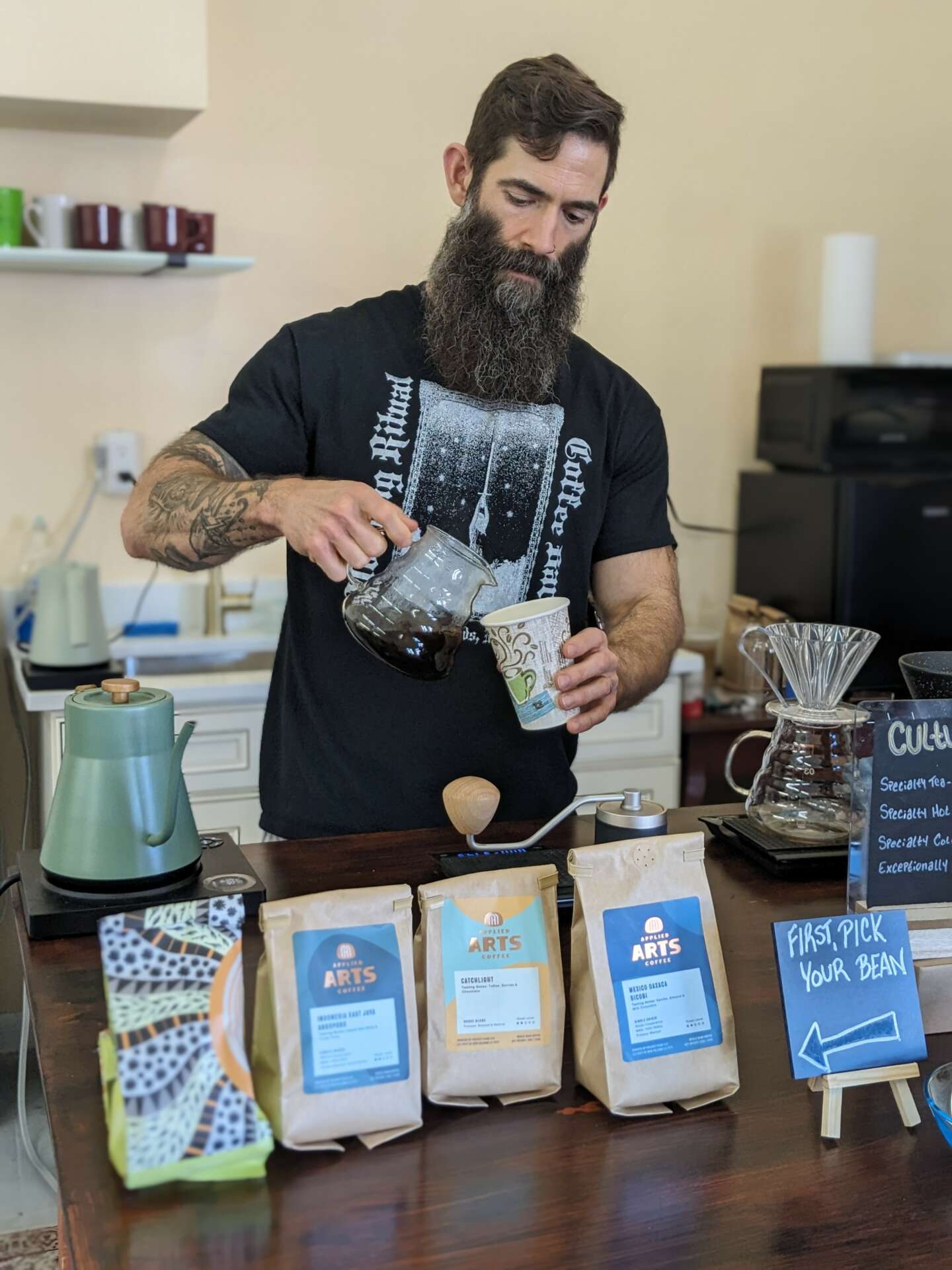 While exploring South Carolina, we did as we always do – specifically sought out cafes to try. One in particular is solely responsible for the moment of conception of Culture Cup Coffee & Tea. There was a map of the world on the wall behind the baristas and I immediately felt that it was such a missed opportunity to not have the map be their menu. Use two colored pins or flags – brown for a coffee bean, green for a tea leaf. Stick a brown pin in France for a French Press, Turkey for coffee brewed in a Cezve, Vietnam for use of a Phin. A green pin in Japan would provide the customer with a matcha, in India for a Masala Chai, and England for a Breakfast tea and a crumpet. Their failing was our success and thus, the idea of serving coffee and tea through a global lens with an emphasis on culture and tradition was born.