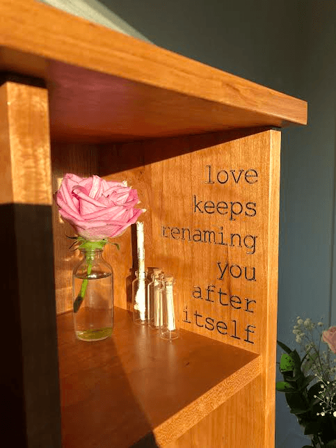 As I approach 30 years old, my poetry legacy is more important than ever. Although I still love experimenting with ideas, I’ve grown certain of a few things I want to create and leave for generations to come. In 2023, I designed a little free library filled with hundreds of anonymous love letters written from strangers to strangers that was open to the public in various art exhibits. I’m grateful for the funding I received through the City of Austin and Austin Public Library, and am eager to develop the project further. I’d love to open an interactive literary arts museum in the coming years that’s akin to Meow Wolf, but entirely focused on words and books.