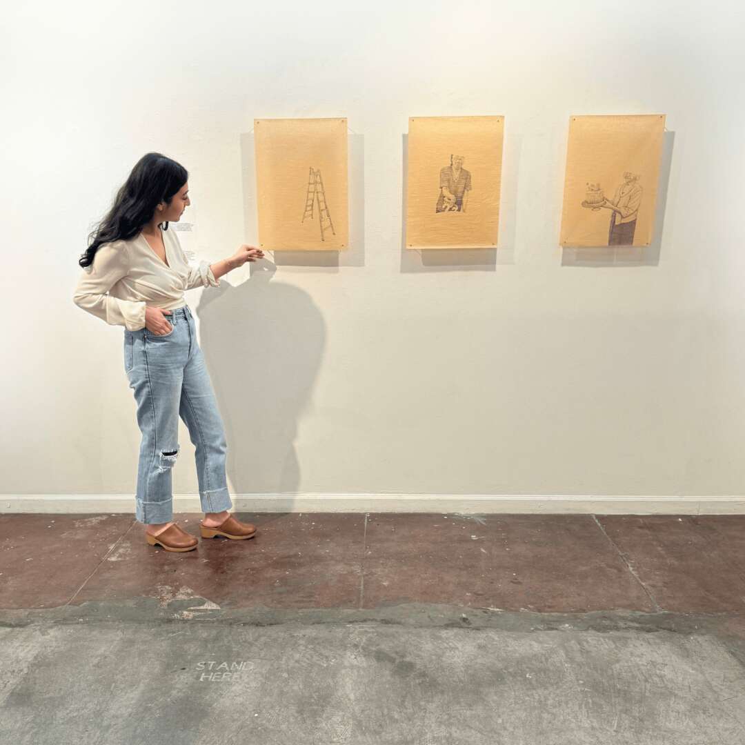 For me drawing is a meditative process that helps me recollect and reflect on personal experiences or memories. My work focuses on intergenerational relationships within my family, and I use drawing as a method of documenting these subtle everyday moments of life. I come to my materials as a drawer, sculpture, and bookbinder, often using discarded found, handmade papers, or remnant materials to draw on or fold into sculptures. My drawings reflect on the juxtaposition between using biodegradable and repurposed materials to archive portraits of loved ones. Drawing for me is a method to communicate with the world around me, it is a daily practice of observing, looking, and collecting.