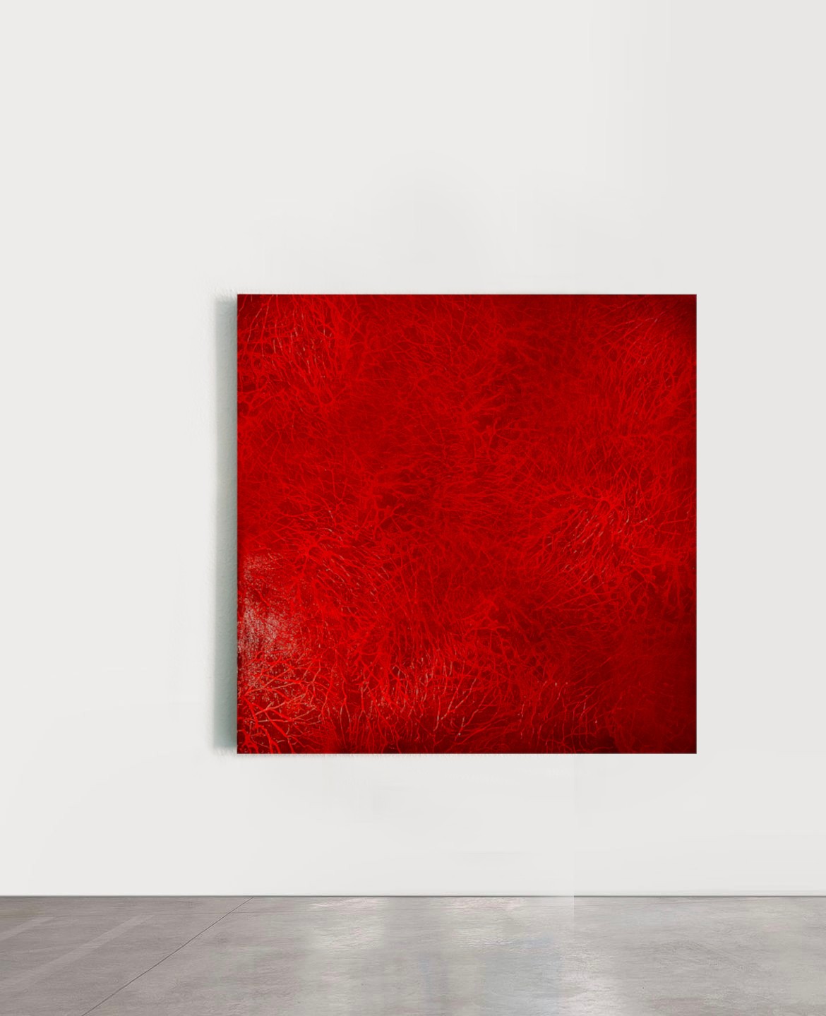 1- Space, 2024, acrylics an varnish on canvas, 100 x 100 cm 2- Conjunction, 2024, varnish and acrylics on canvas, 100 x 100 cm 3- Deep, 2024, acrylics on Canvas, 217 x 172 cm 4- Roots, 2024, acrylics on Canvas, 217 x 172 cm 5- Red Mirror, 2022, Gypsum powder mixed acrylic paint on 4 sheet clear PVC layers, 70 x 100 cm 6- Wake up 02, 2022, acrylics on 3 clear layers PVC, glass, dichroic foils, framed in metal, 30 x 21 cm 7- Mono 02, 2024, varnish and acrylic on Wood Board, 42 x 30 cm 8- Fog 01, 2024, varnish and acrylic on Wood Board, 21 x 30 cm