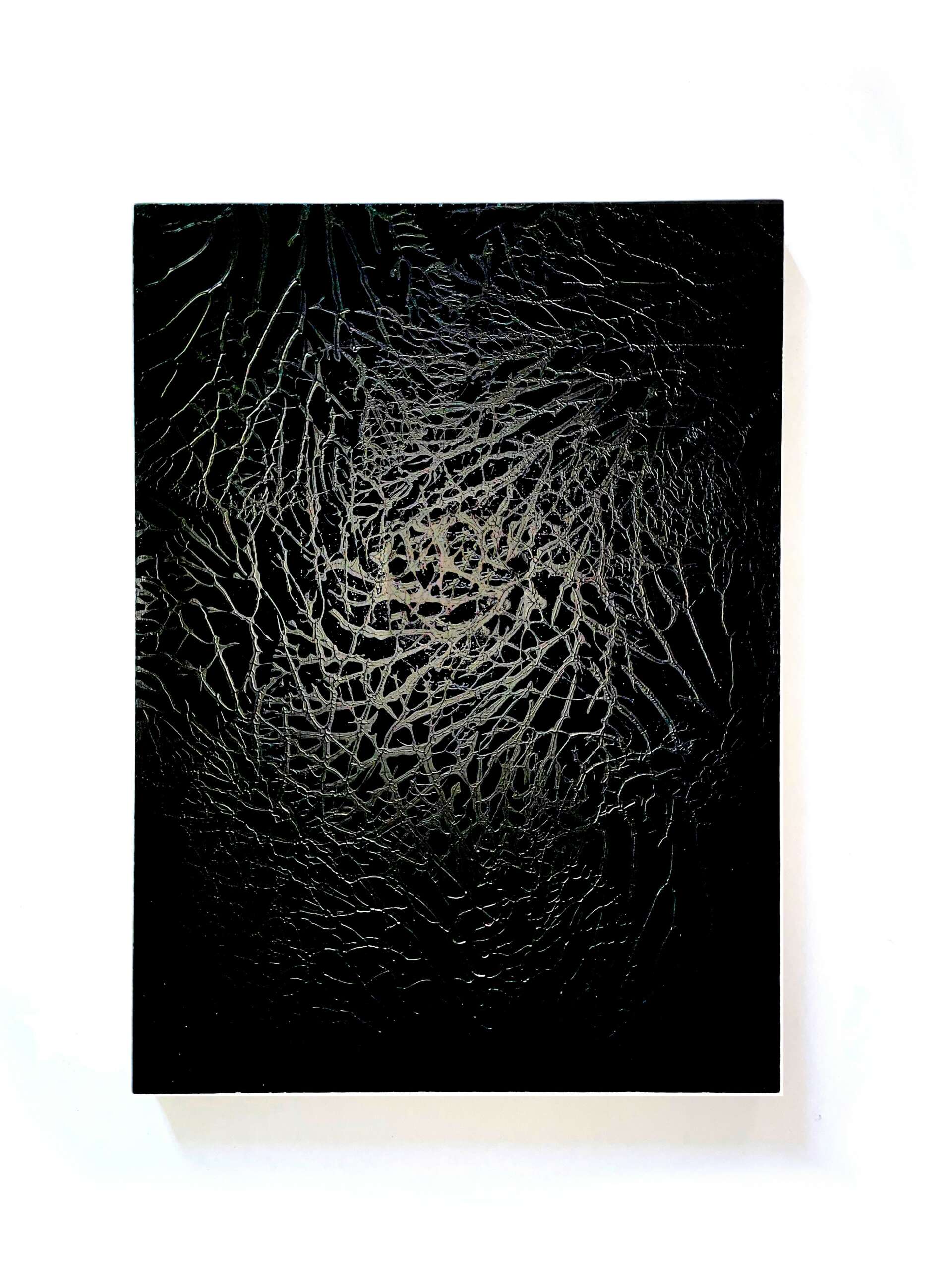 Each piece boasts a heightened tactile quality, adding depth and complexity, thus further accentuating the sense of organic materiality and beckoning viewers to engage in closer examination. Her medium and large-scale creations wholly envelop the surface, immersing and disconnecting the observer from reality.