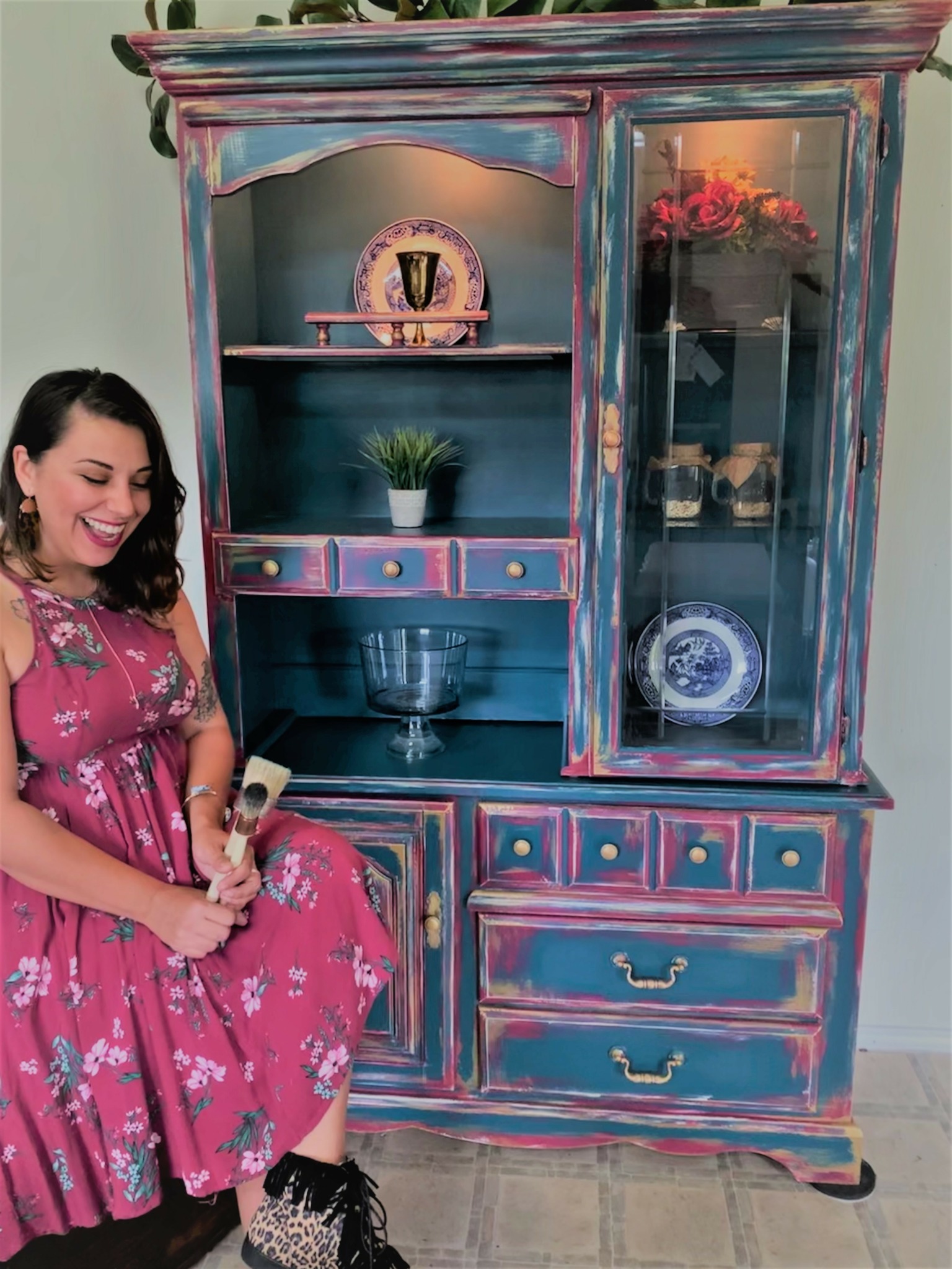 My specialty is putting a modern spin on antiques. I use bright colors and fun combinations to create something bold, artsy, and refreshing. I love to use drippy gold paint as a final touch and I enjoy using colors that light you up, such as bright pinks, bold greens, purples, and blue.