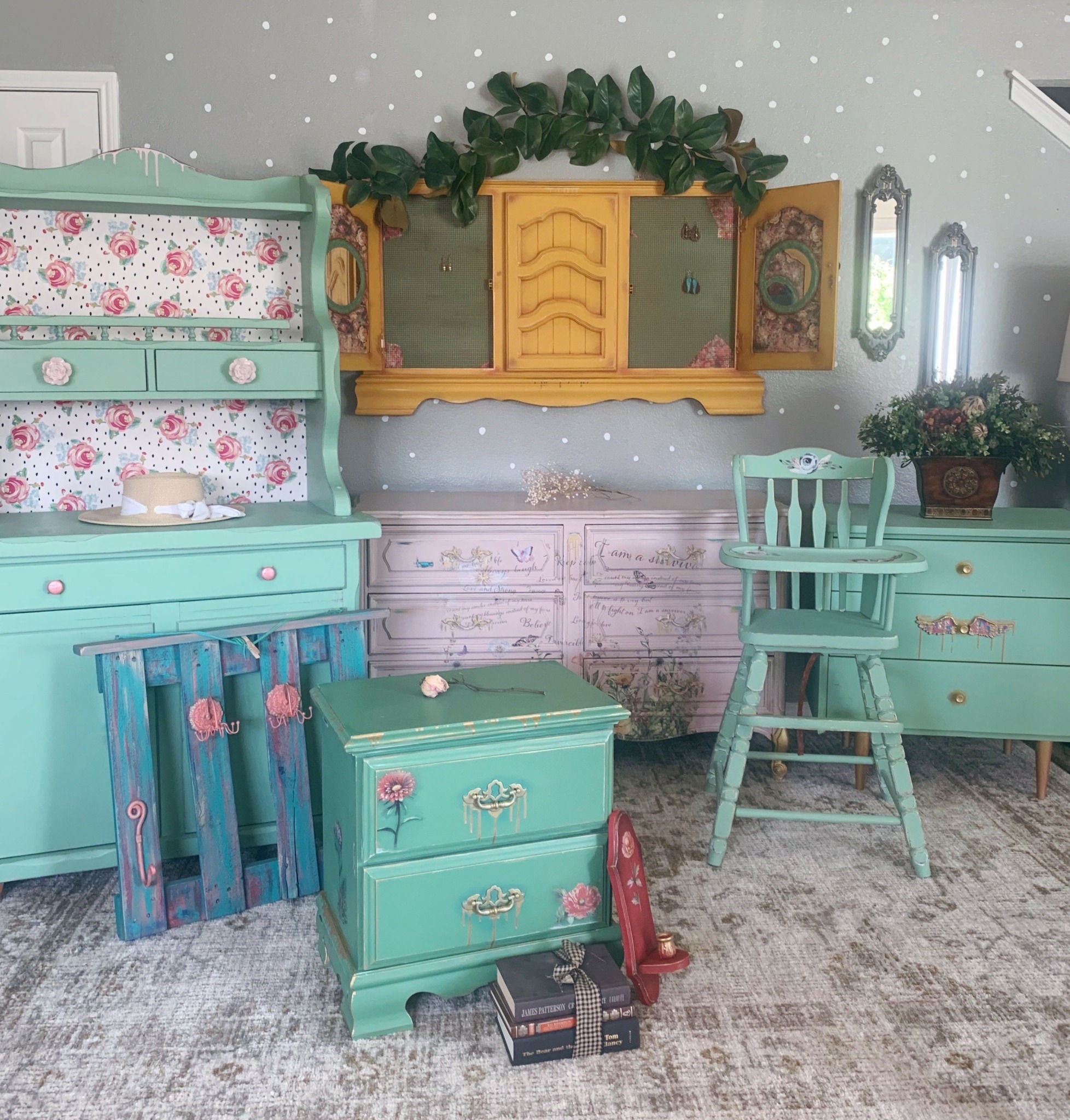 What sets me apart from others is that my pieces are one of a kind, they are exciting to look at and create a unique aesthetic. I paint the back of items and the inside of drawers. No matter where you look, you will see beauty. I am here to help you live more sustainably by recycling furniture and décor and giving them new life. I can help you add pops of color that positively change your mood and lead you to love your space! I want to inspire you to focus on a beautiful reality. We get to create these feelings for ourselves. I encourage you to set yourself up for these sweet moments and watch the magic unfold.