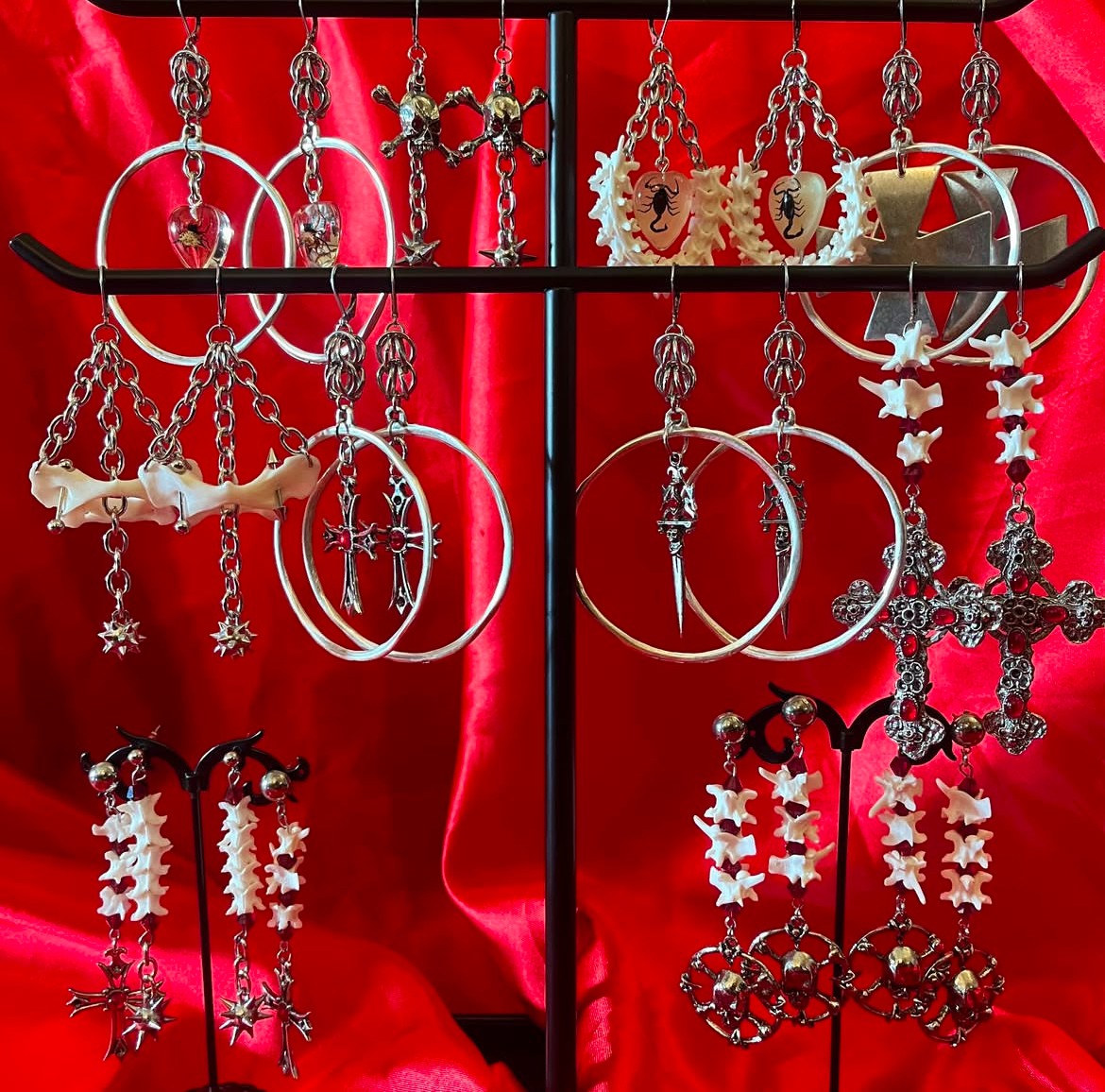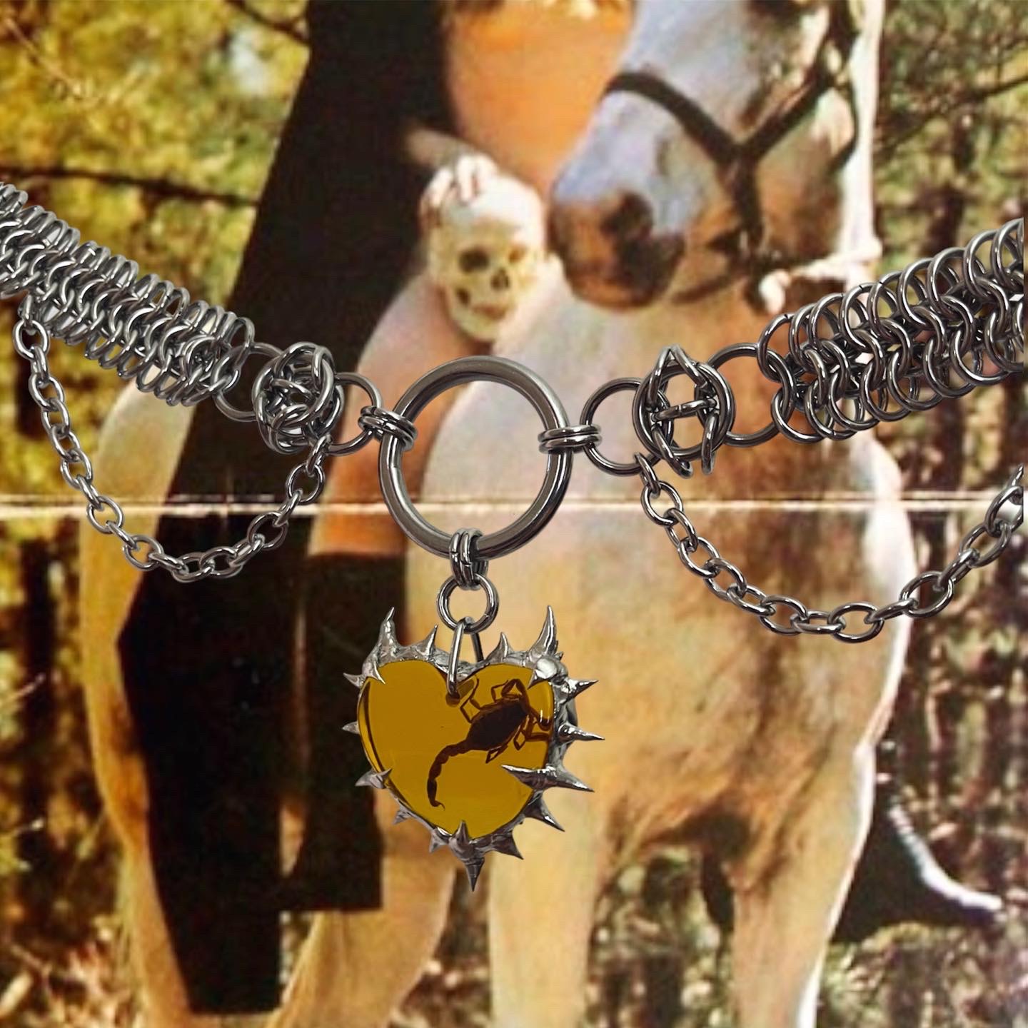 Muerte Profana is a jewelry brand for lovers of metal, goth, the occult, and anyone who wants to feel badass and sexy. My designs are all about making bold statements, incorporating metallic elements, spikes, chains, bones, bugs and dramatic shapes. It’s a brand for individuals who embrace self-expression, confidence, and a passion for unconventional, eye-catching accessories.