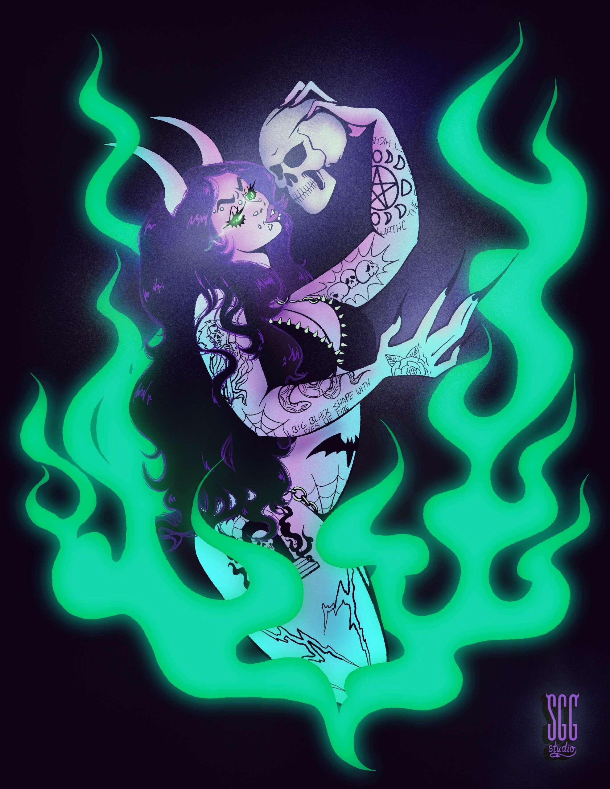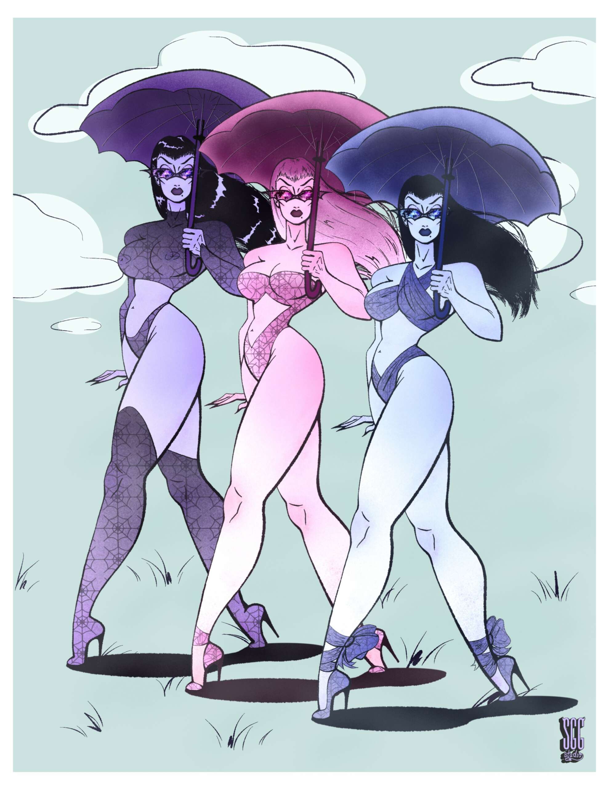 My name is Samantha Girouard, aka Sammy G, aka, SGG Studio. I am an illustrator and designer who specializes in pinup, cartoon, horror art. I’m 25, so just barely in the Gen Z category. I’m originally from Wisconsin but am currently living in Arizona. I have been drawing, crafting, creating and designing for as long as I can remember. My mom even told that sometimes it felt like if I stopped creating, I would die, as if art is my oxygen, my source of life. And she’s not entirely wrong. I dabble in anything and. Everything, from drawing, to painting, to DIY-ing clothes, making clothes, making jewelry or even crocheting. I love it all. However, my bread and butter is defiantly illustration. Early on I fell involve with all things alternative thanks to my parents exposing me to alternative music at an early age, and then falling in love with horror around the ages of 7-10 with the books Scary Stories To Tell In The Dark, RL Stein and Goosebumps. So, it really should shock anyone that my art is a combination of my love of alternative music and horror. I feel it might be important to note that I am also a queer woman, which partially explains why I make pinup art. I am pansexual so I can see the humanity and beauty in men, women, intersex and nonbinary people. I try to showcase that in my art but I don’t always know how successful I am. I am very proud of my art specifically my take on pinup art. I have a complicated relationship with the pinup world and want to offer my thought and emotions to it. I try to brand my art as an empowering thing rather than dehumanizing, though I acknowledge not even would agree, and more inclusive. I of course am always working on bettering these aspects of my art and don’t think I’ll ever stop. My art is defiantly geared more to women, fem presenting people, and the queer community but that doesn’t’ mean straight cis-gender men aren’t welcome, it just means that if they wish to be in this community they must better themselves and treat all of us with respect. That’s it. I won’t tolerate bigotry and if I am ever doing something that is hurting people I would hope those how enjoy my art would respect me enough to reach out and tell me so I can better myself or at the very least agree to disagree and be more mindful moving forward. My art and brand are all about showing a more importing way to view the human body, specifically the female body, while hopefully proving some much needed catharsis as well. I wish to bring your dreams, or your nightmares true. Sometimes, maybe even both. That’s why I’ve started to use “pleasant nightmares” as a calling card or sign-off, especially on my TikTok. Again, I embed my love of horror and empowerment into my art, so doing my own spin on Elvira’s catchphrase just seemed right. Not only is she a horror icon, but also a feminist icon, and my icon, as well. I try to always embed all of this into my art and will continue to do so.