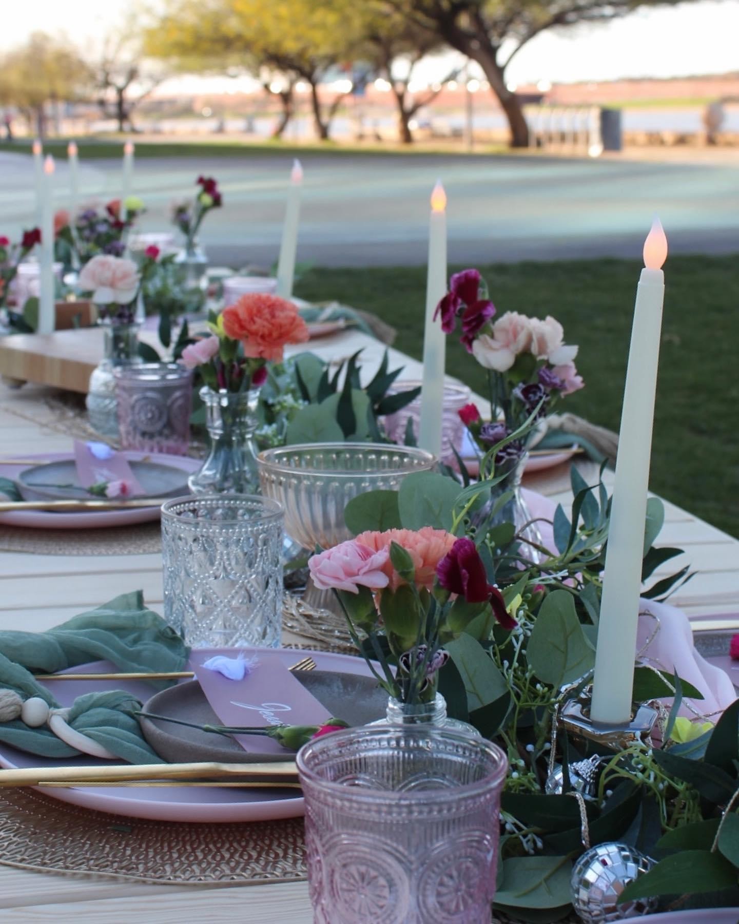 The name of my company is Bevy Events & Rentals. I came up with “Bevy” one day as I was driving to go out of state on a surprise trip with my girlfriend. We were talking and I told her I really wanted to start an event planning business (finally, everyone I’ve ever known has told me for years I should do this!). She of course was extremely encouraging and excited that I was finally going to do something I am so good at! As we drove, I started looking up synonyms for “party”.. Bevy was a synonym of that word meaning a gathering of people — usually women. That stood out to me because we are a LGBT+ couple and having that little piece of womanhood / women coming together just felt right. Plus, as soon as I read the word “Bevy” out loud, I IMMEDIATELY could start thinking of all the ways I’d advertise. It fit like a glove. My girlfriend loved the name too. Then, about an hour later, I found out this surprise trip out of state was actually a trip she planned so she could propose! We had been together for almost 8 years. It was the most magical day of my life. And when I look back and remember that we picked out Bevy’s name right before the best day of my life, it just made it that much more special.