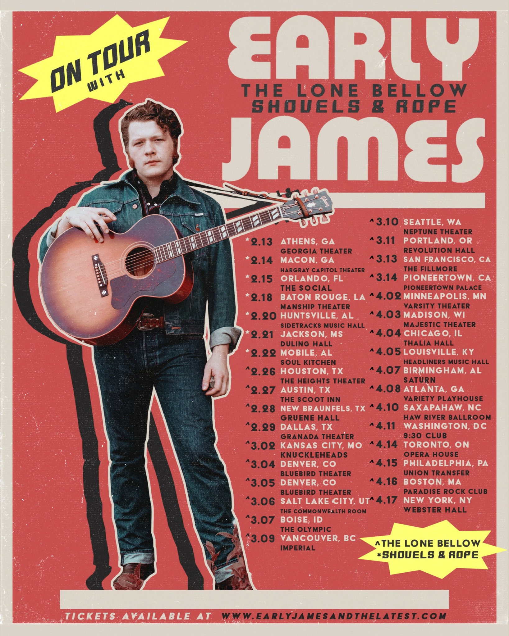 Photo Credit for Early James//Lone Bellow//Shovels & Rope tour poster photo: Alysse Gafkjen