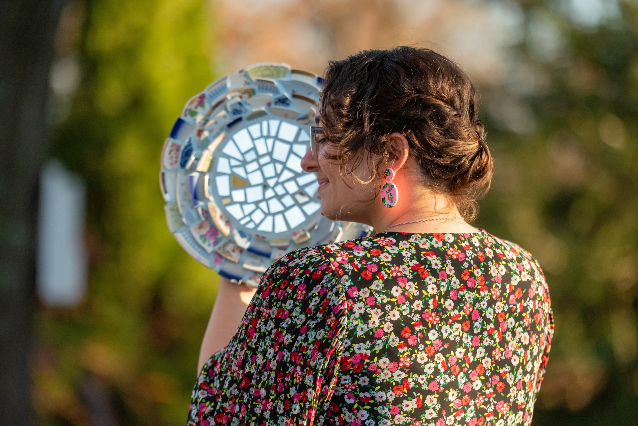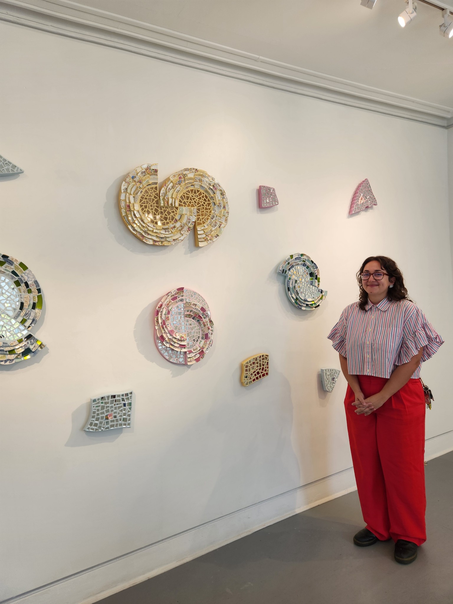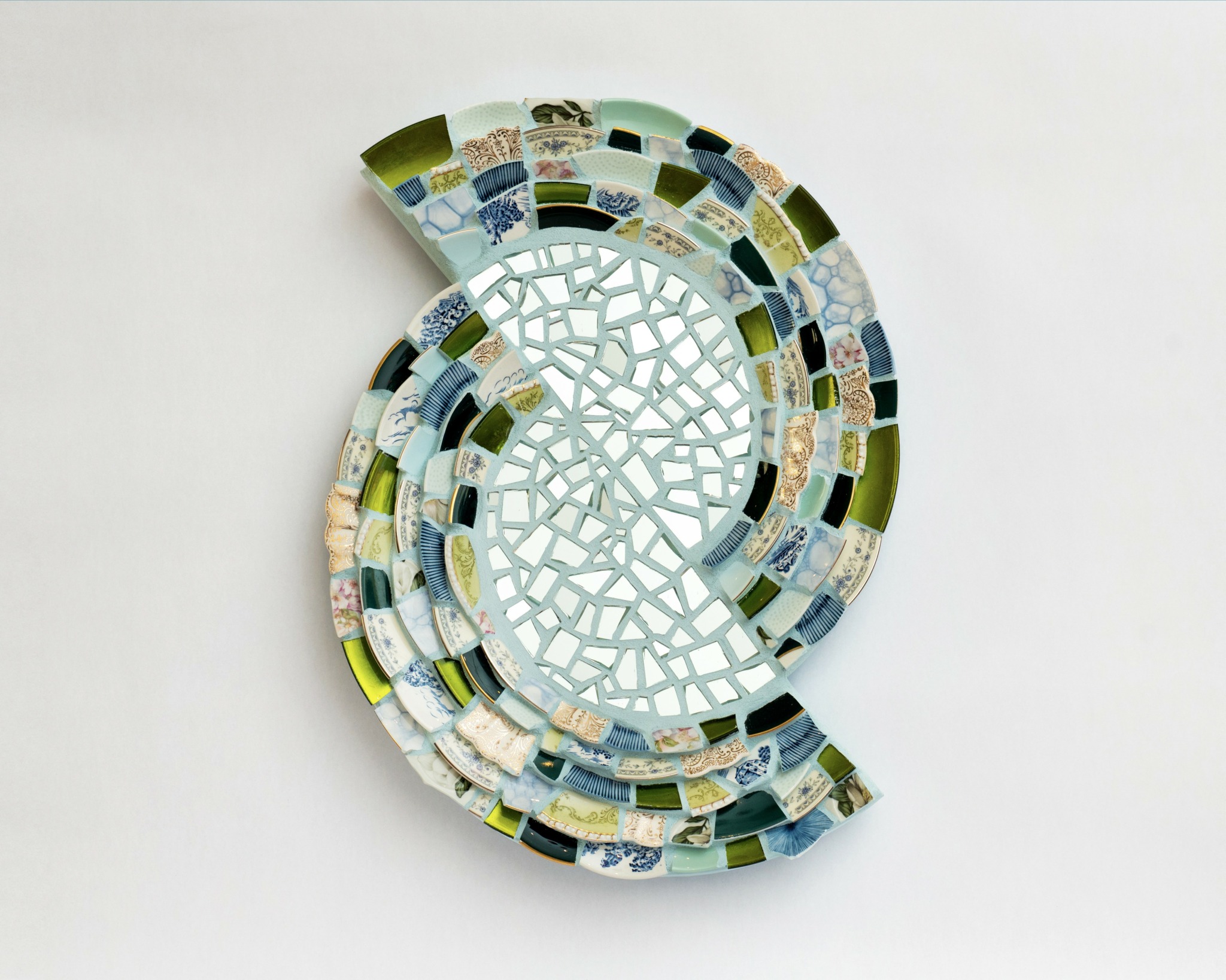 The mission statement that drives my work is an exploration of the ways in which feeling broken can transform us, as well as the things we can do to transform ourselves through that healing process. Since creating my first mosaic in this style in 2015, I have been on this journey of thinking about these pieces as a vehicle for healing. I realized that when a plate breaks in the home it acts like an alarm. This accidental moment of destruction needs to be remedied and the evidence must be swept up and discarded. Such a response indicates something shameful occurred. We are not taught how to handle plate shards after a plate is no longer whole, we are taught to make the evidence of fracturing disappear. If we think of ourselves as plates, fractured by life experiences, what happens after we are broken? Can we hold the delicate shards created by our trauma with tenderness, can we create healing for ourselves?