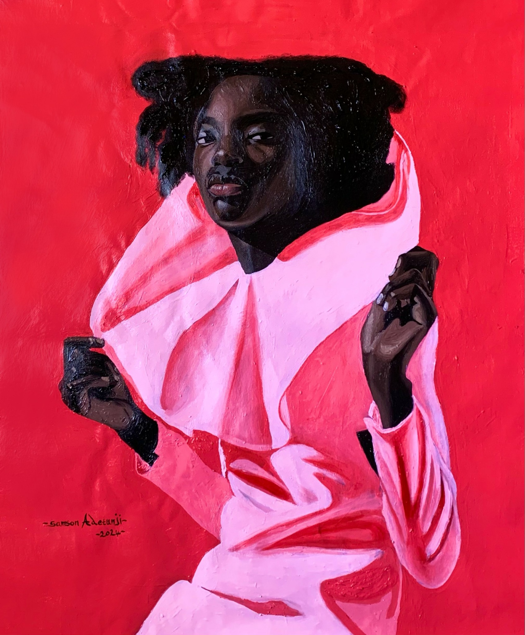 My name is Samson Adetunji, I was born in 2001 in the soulful lands of Osun State, Nigeria, I’m a luminous young artist whose work pulses with emotion and quiet power. A graduate of Obafemi Awolowo University AFUED Ondo,Nigeria, where I earned my degree in Fine and Applied Arts, i weaves together acrylic, oil, and charcoal with a tenderness that speaks directly to the heart. My creations, often inhabited by human figures and gentle animals, are delicate meditations on compassion, empathy, and the shared language of feeling. Each canvas becomes a love letter to the human condition — a space where vulnerability meets strength, and silence finds its voice.