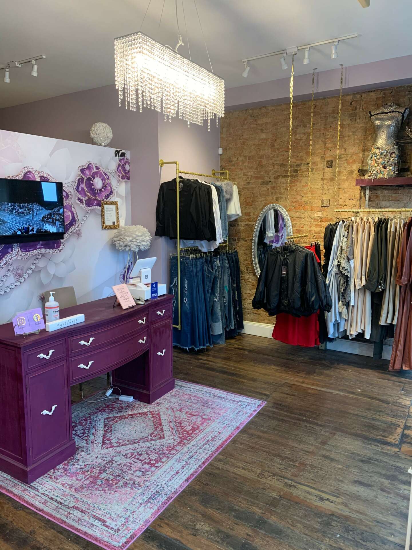 After 7 months of renting out a pop-up shop space in the historic Over-The-Rhine shopping district in downtown Cincinnati, we opened our first brick and mortar location. We couldn’t believe how fast things took off! We knew that it was taking a huge chance in the midst of a pandemic but we were determined to live out our dream. With the support of our close friends and family, it was a pretty smooth beginning to this journey. We took a month to remodel the space and create a beautiful ambiance that gives the look and feel of a walk-in closet… a “vintage boudoir” is what we like to call it.