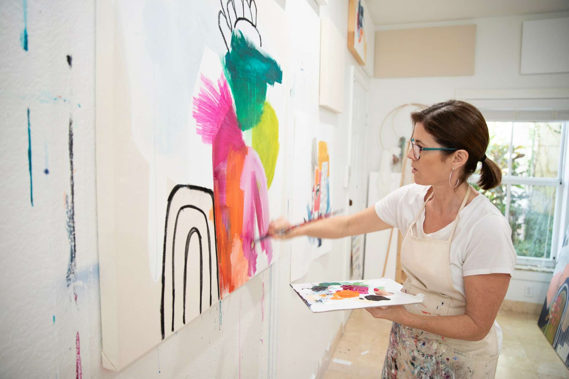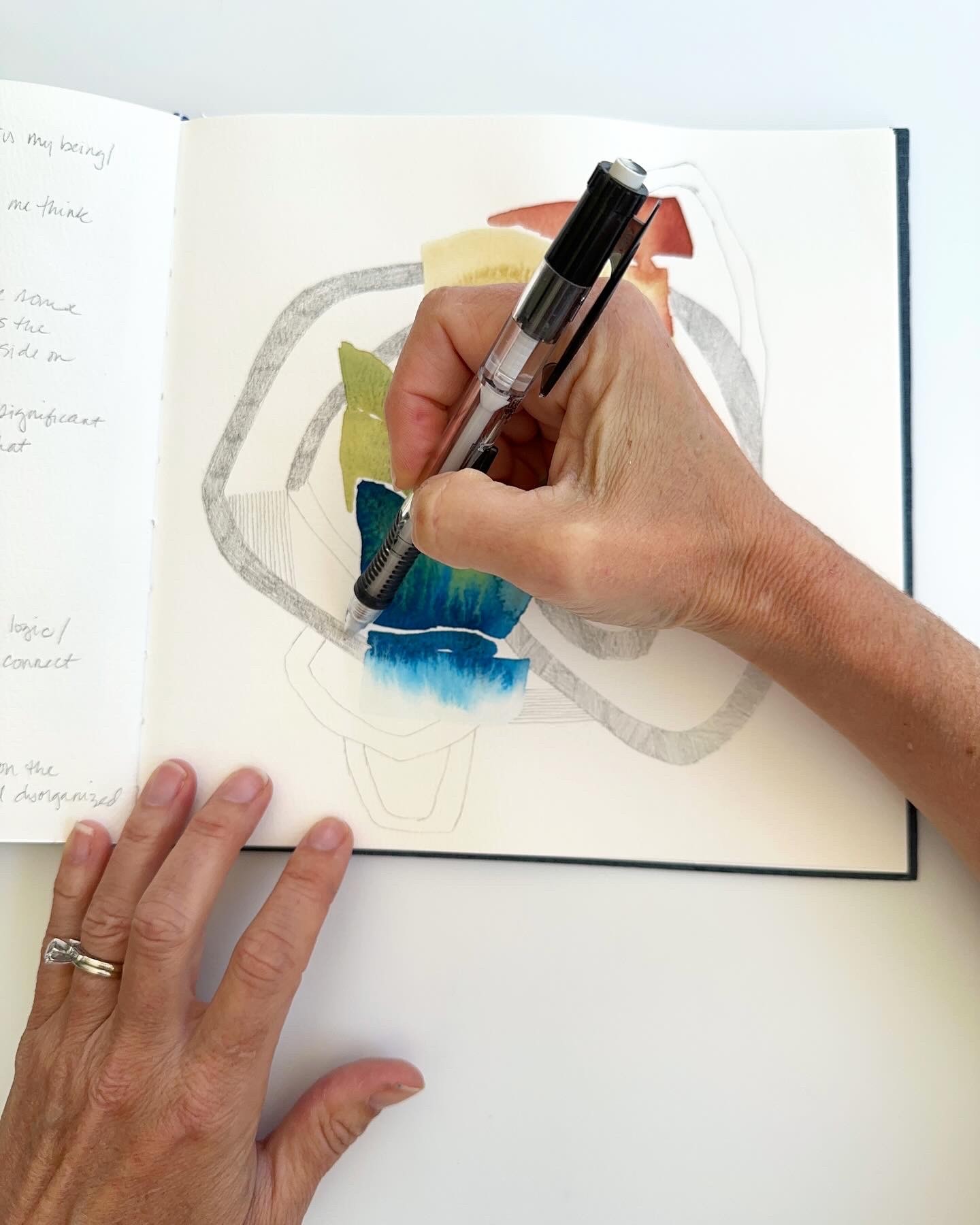 Sara Schroeder: Sara Schroeder Art Journal Work, Sara Schroeder Visually You exercise, and Sara Schroeder Journal Work Vance Schroeder: Sara Schroeder Solo Exhibition Natalie Medrana-Cervera of Suna Photography: Sara Schroeder Teaching, Sara Schroeder Journaling, Sara Schroeder Painting Large Work, Sara Schroeder Teaching Studio,
