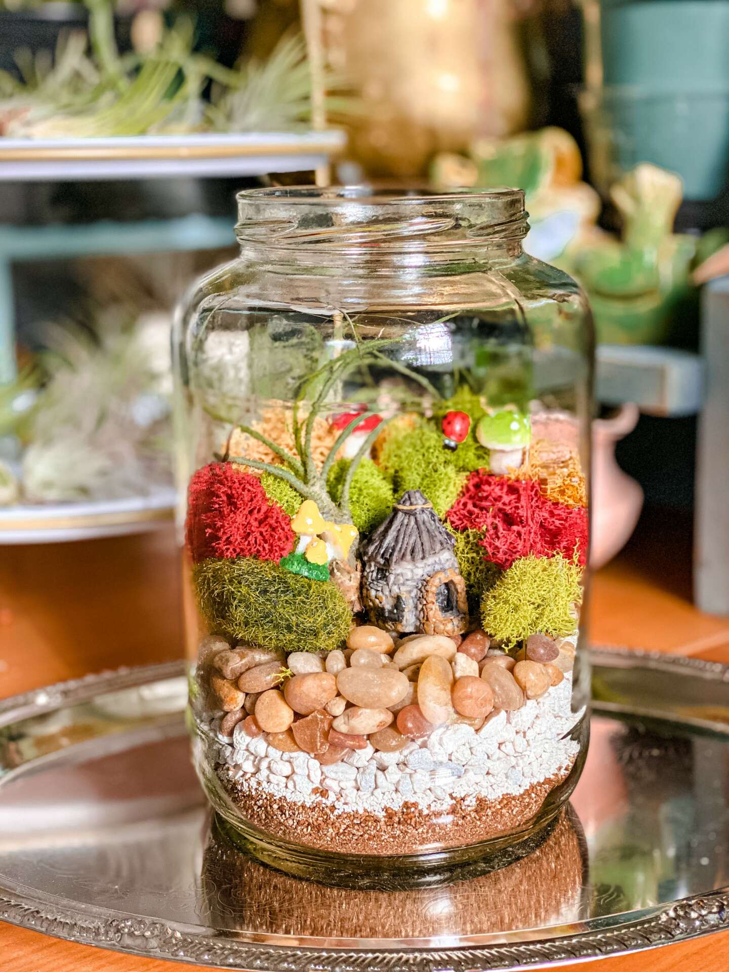 My name is SaraBeth, I’m the owner of SaraBeth’s Vintage Home & Garden which I like to say is far from your average plant shop! I actually got into the plant world many years ago building terrariums and fairy gardens. I just fell in love with the concept of creating small worlds inside of a container, which turned out to be the inspiration for my store. I have a lot of fun creating terrariums and I wanted to give others the opportunity and the space to get messy and creative and make a terrarium for themselves without having to buy large quantities of rocks and sand and plants to make at home. I first started at local flea markets selling plants and I debuted my DIY terrarium bar idea and grew a following of people that loved to come each week and create something new!