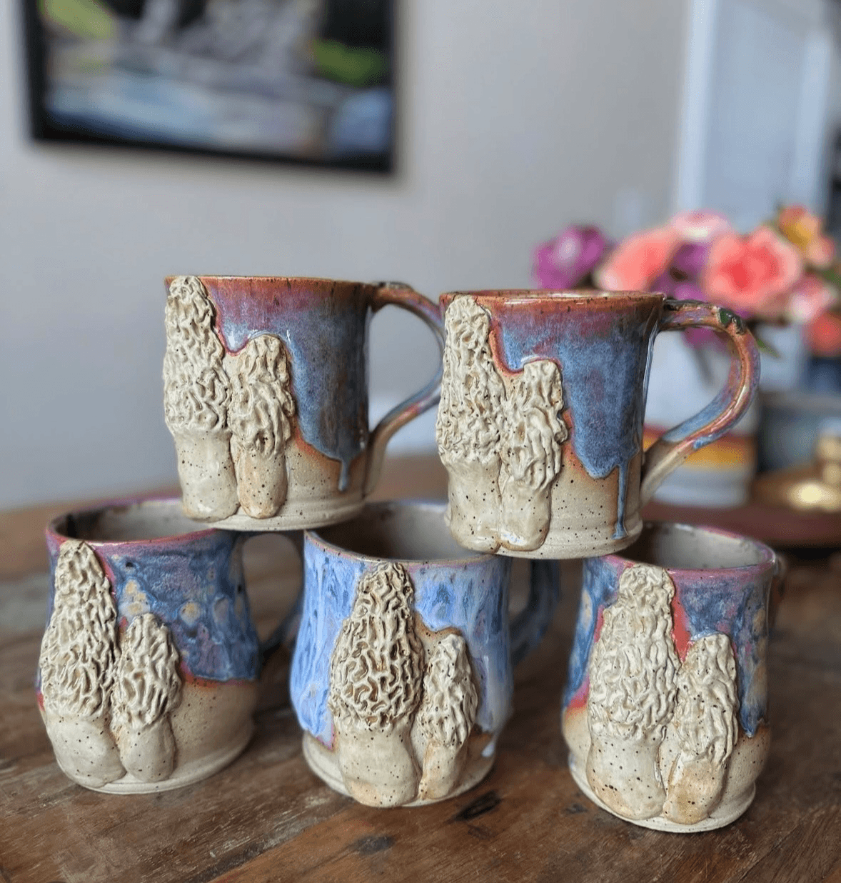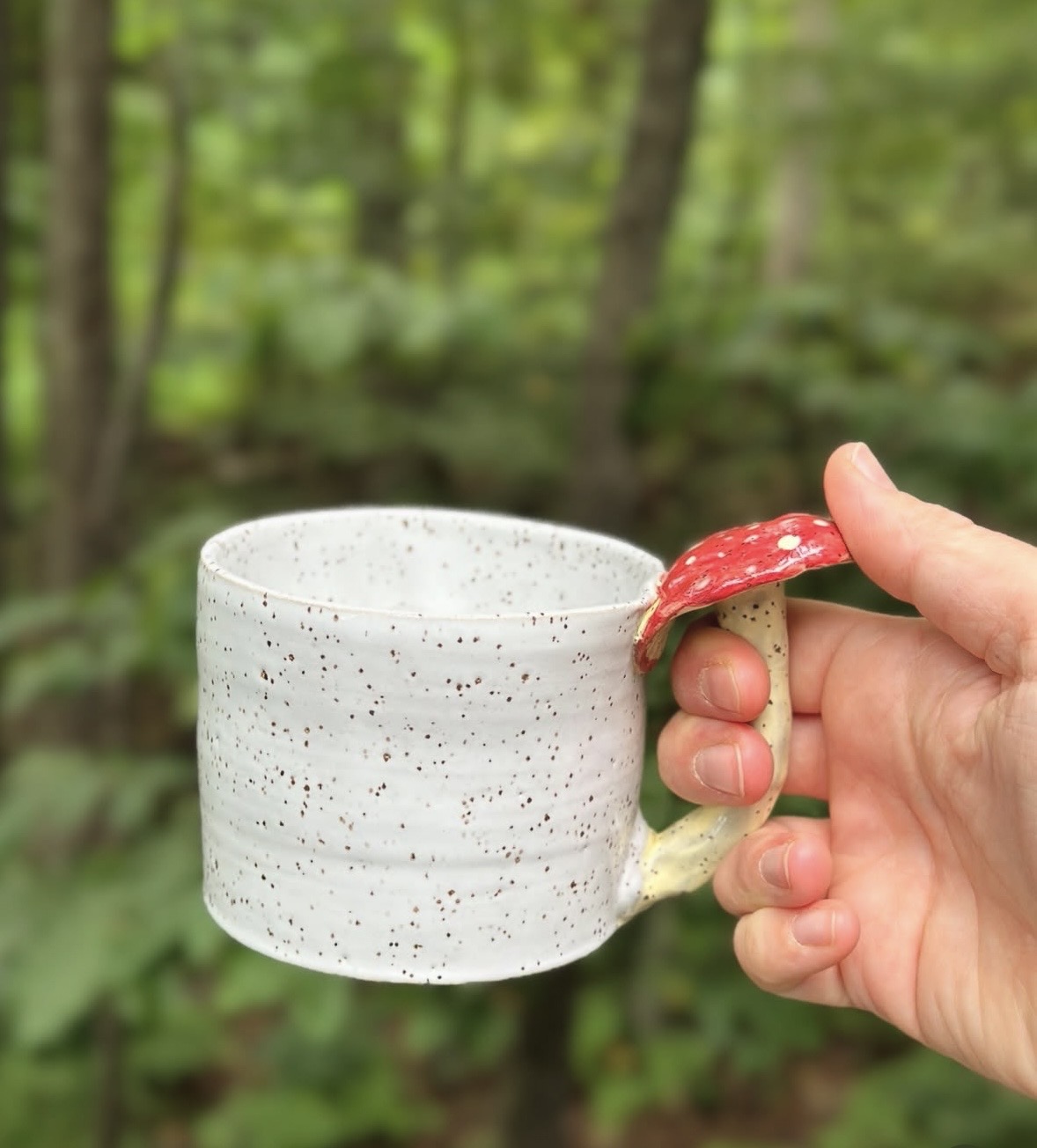 I have always been an artistic person. My mother and grandmother were exceptional oil and acrylic painters, and my dad did quite a few beautiful woodworking projects when I was younger, which was always a big inspiration for me. Even now, I have pieces of my dad’s woodworking and my mom and grandma’s art in my home that I look at or use every day! Even though I knew I was a creative and artistic person, I never really found an outlet that was the right fit for me. Once I stumbled upon pottery, I knew that it was my medium. Creating something beautiful out of a plain ball of clay is such an involved, yet rewarding, process. A lot of my inspiration and drive comes from places my husband and I have traveled to. I love seeing how different cultures create and make art. Just like when traveling, you realize that even though you’re from different cultures and some things may be culturally different, a vast majority of our human nature remains the same – including the way we all have an internal need to be creative or artistic. But more importantly, I love to make things that will make others happy. My current obsession are my little ring holders shaped like geese, along with my whimsical mushroom mugs. It’s always exciting to see someone light up and smile when they are looking at something you made with your own hands. I very rarely make two things identical, because I am always trying out new designs, color combinations, and techniques. I’m most proud of building my business from the ground up, and being able to show others that, with the right discipline, time management, support from family and community, and taking the risk, you can create a business you’ve dreamed of. It won’t be a smooth road, but it will likely be an incredibly rewarding one.